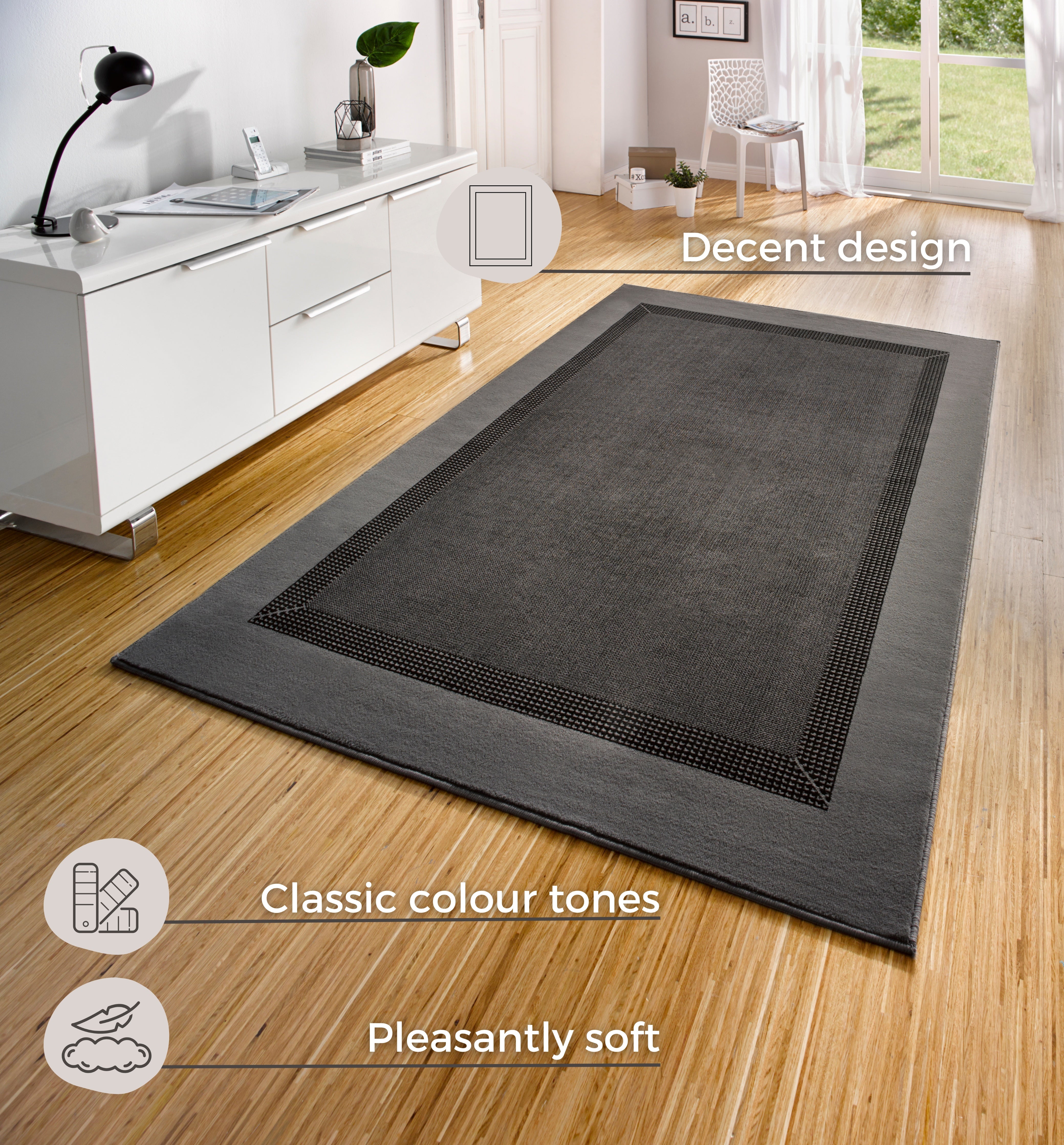 Med en luvhøjde på kun 0.9 mm føles tæppet behageligt fast under fødderne. For at holde dit "Basic - 102497 Grå" tæppe i topform anbefales rengøring med tæpperens eller tæppeshampoo.