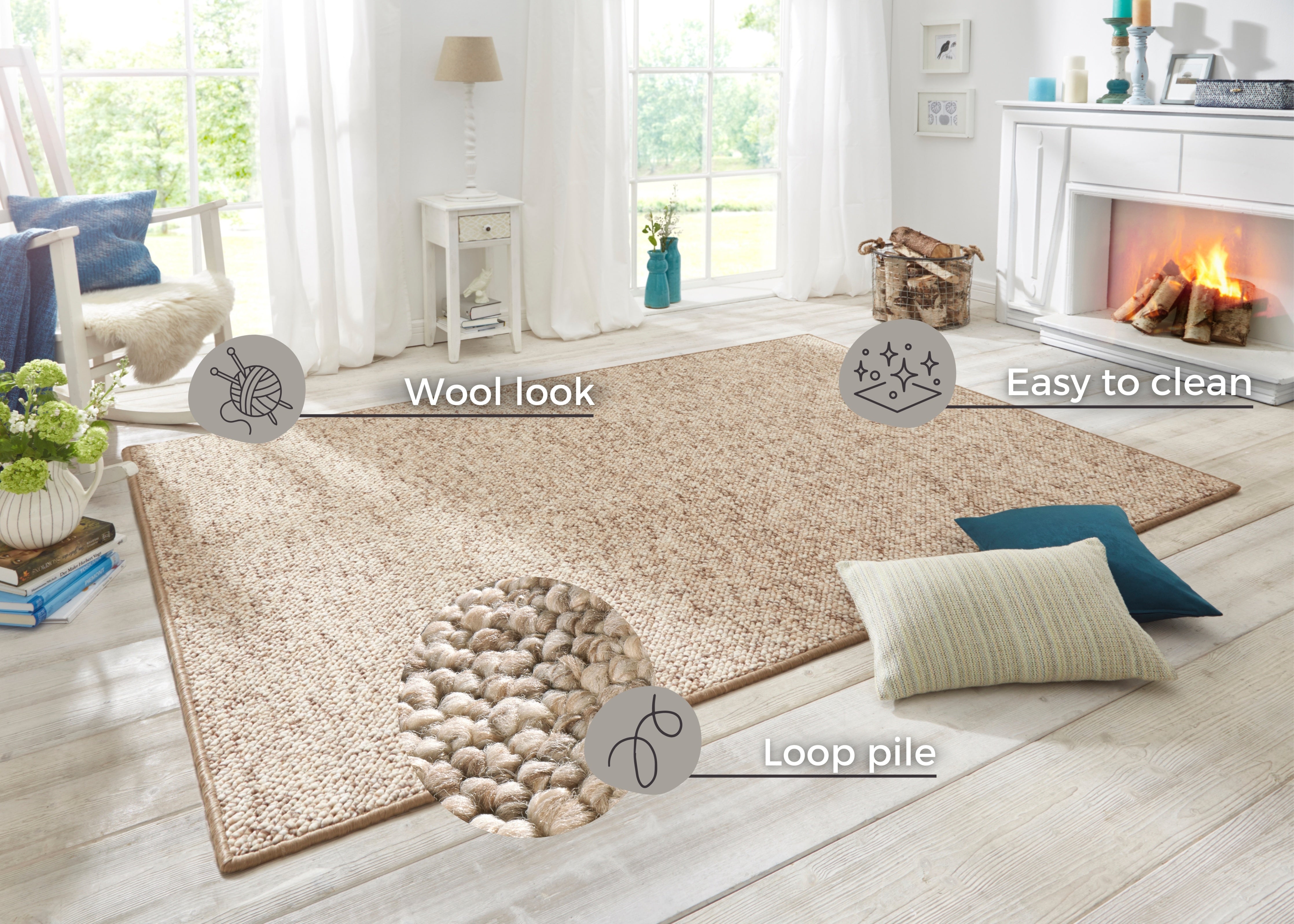 Wolly-tæppets enkle uld-design passer perfekt til mange forskellige indretningsstile. Den høje kvalitet og de syntetiske fibre gør tæppet ekstremt slidstærkt og nemt at rengøre. Med en blød fleecebagside får du ekstra komfort, uanset hvor du placerer tæppet. Wolly er desuden egnet til alle gulvtyper, inklusive gulvvarme, hvilket gør det til et alsidigt valg til ethvert rum.