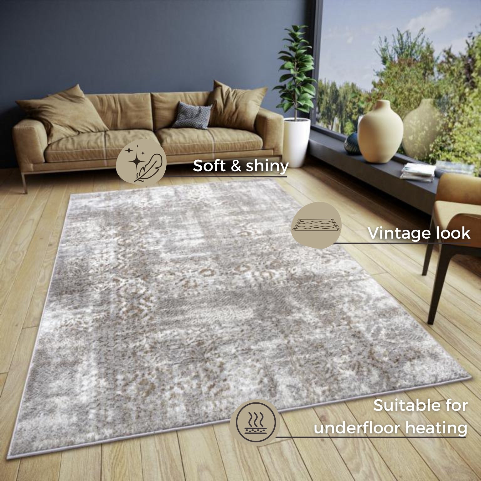 Shine-tæppets vintage-look giver en nostalgisk følelse, der passer perfekt ind i moderne indretninger. Den slidstærke latexbagside (100%) sikrer et godt greb på gulvet, uanset om du placerer tæppet i stuen, soveværelset eller spisestuen. Tæppet er desuden velegnet til gulvvarme, så du kan nyde en behagelig varme under fødderne året rundt. Det tidløse design og den robuste konstruktion gør Shine-tæppet til en investering, du vil glæde dig over i mange år.