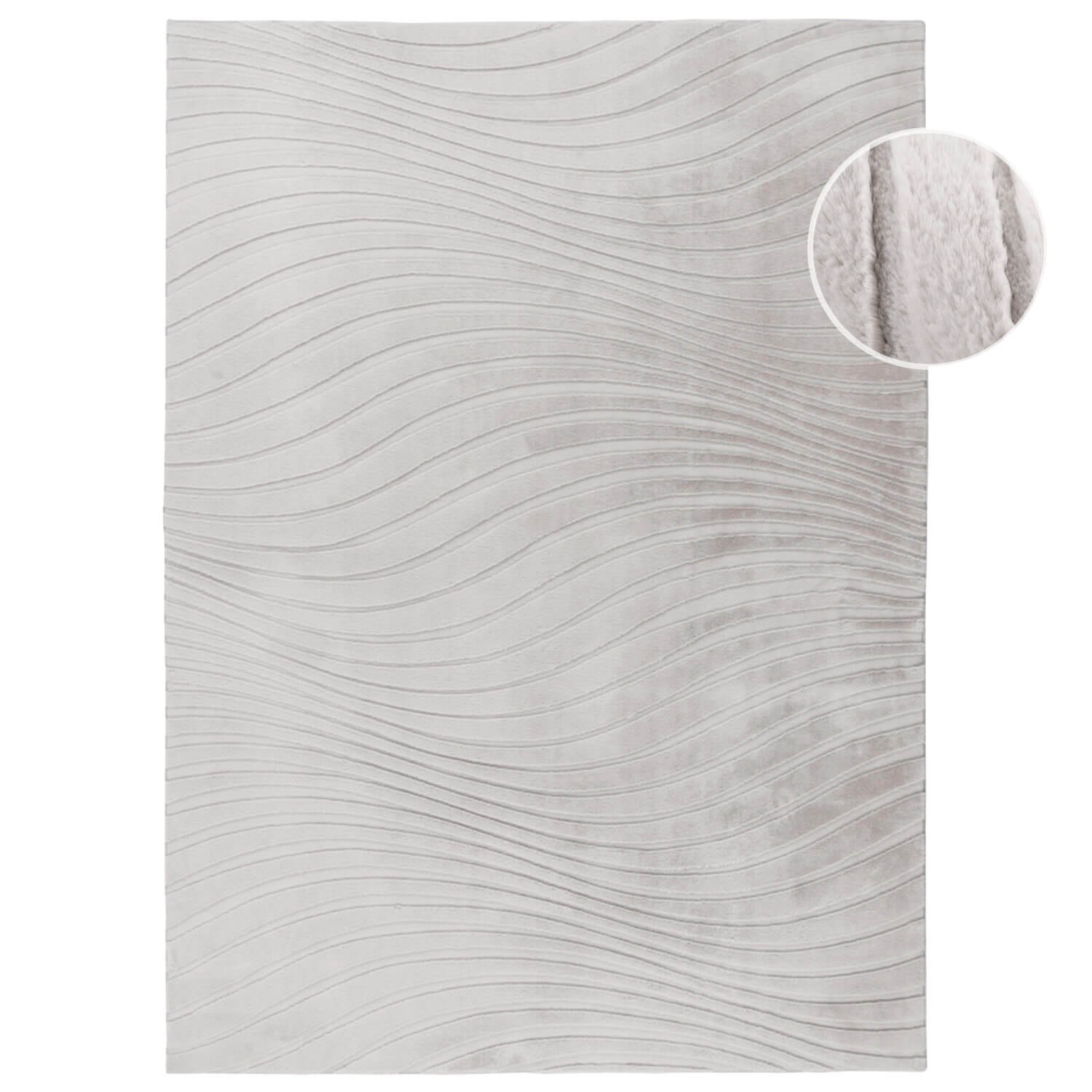 Bring harmoni og blid dynamik ind i dit hjem: Waves-kollektionen imponerer med sit moderne design og elegante relief-look (3D-effekt). Dette tæppe er lavet af polyester af høj kvalitet med en blød fornemmelse, er fløjlsblødt og skaber en hyggelig atmosfære i ethvert opholdsrum.