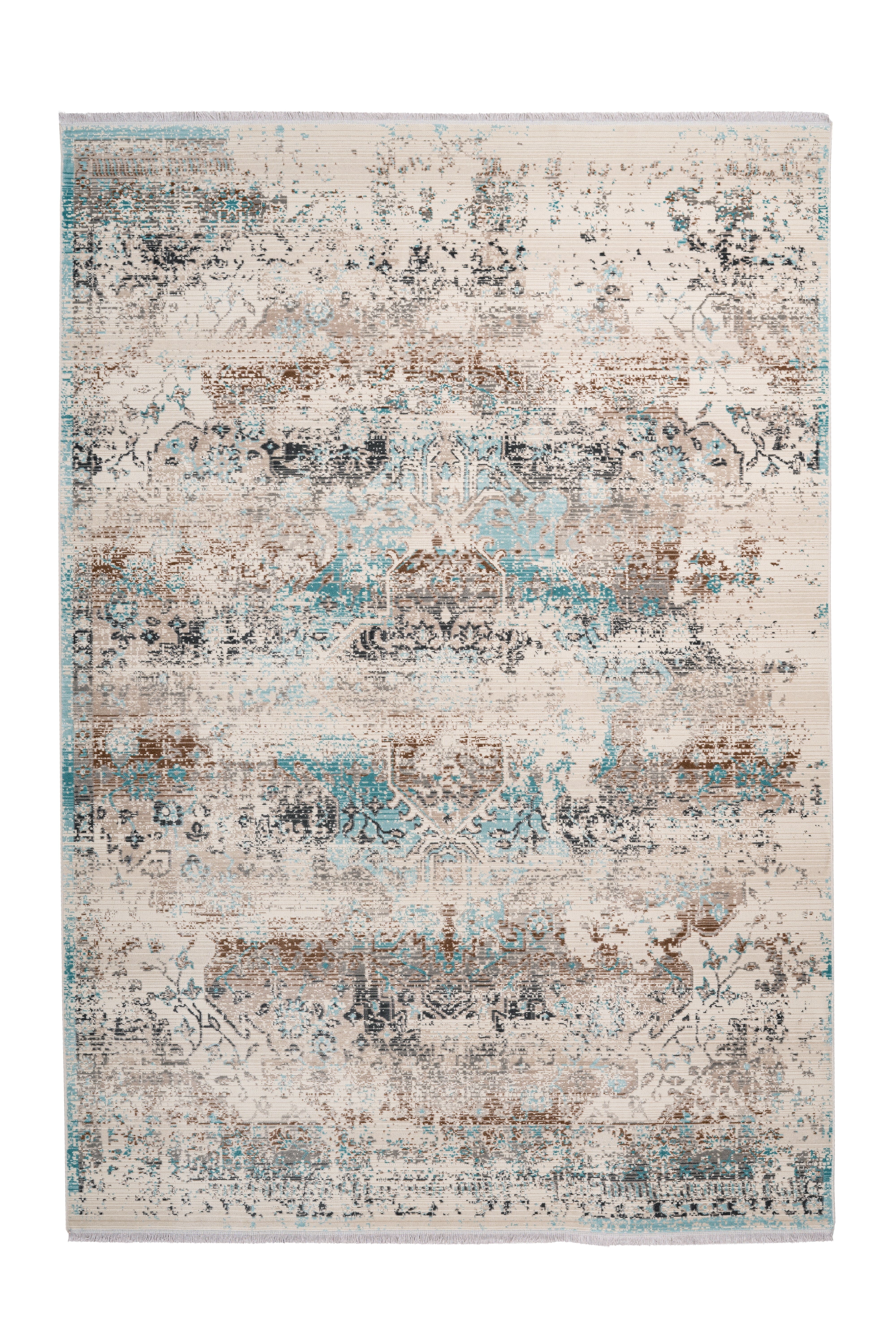 Det attraktive design på dette vintage-tæppe er imponerende på alle måder. Harmonisk afstemte farver og et stilfuldt design gør tæppet til et blikfang i ethvert rum. Bløde frynser i enderne fuldender det samlede look. En anden fordel er det letplejede, ekstremt flade materiale, der gør denne model til et alsidigt stykke møbel, der kan bruges selv i rum, der bruges ofte.