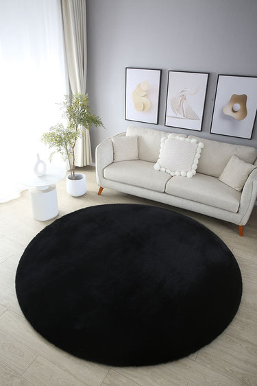 Pelus Soft Pels Tæppe - Black Rundt