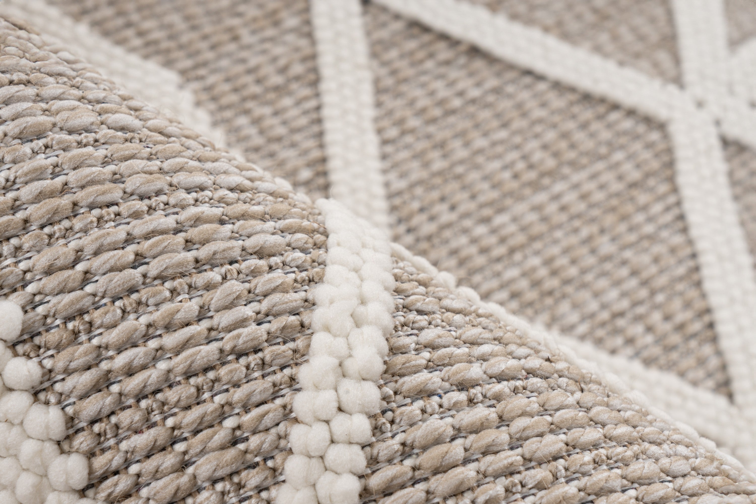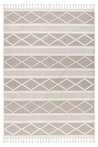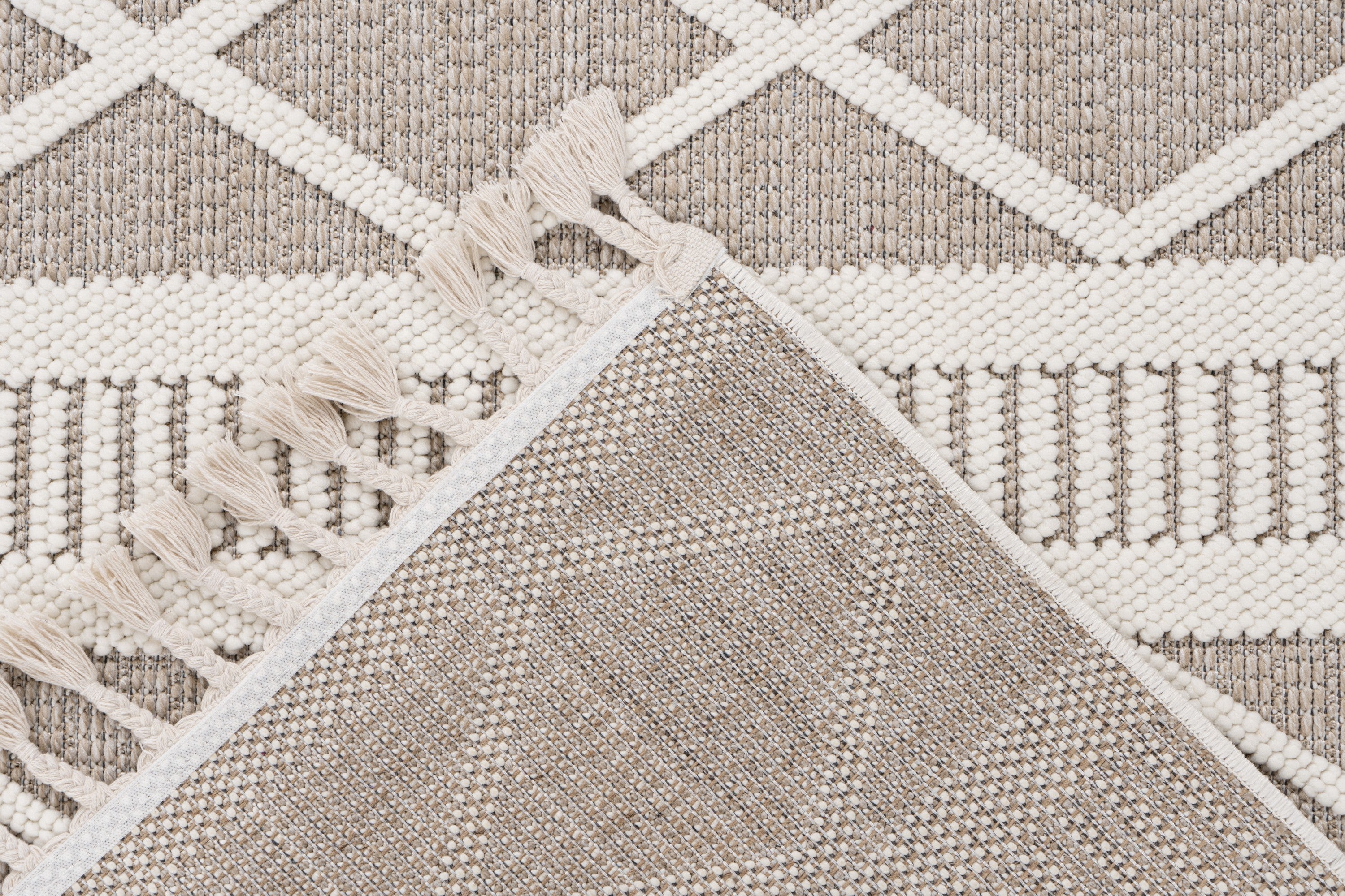 Dette maskinlavede tæppe kombinerer moderne teknologi med klassisk design og er udført i slidstærkt polyester af høj kvalitet. Med håndknyttede frynser får tæppet et elegant finish, der minder om traditionelt håndværk. Tæppet har en luksuriøs 3D-effekt, skabt gennem høj-lav mønster, hvilket giver det et unikt, dynamisk udseende og en visuel dybde, der skiller sig ud i ethvert rum.