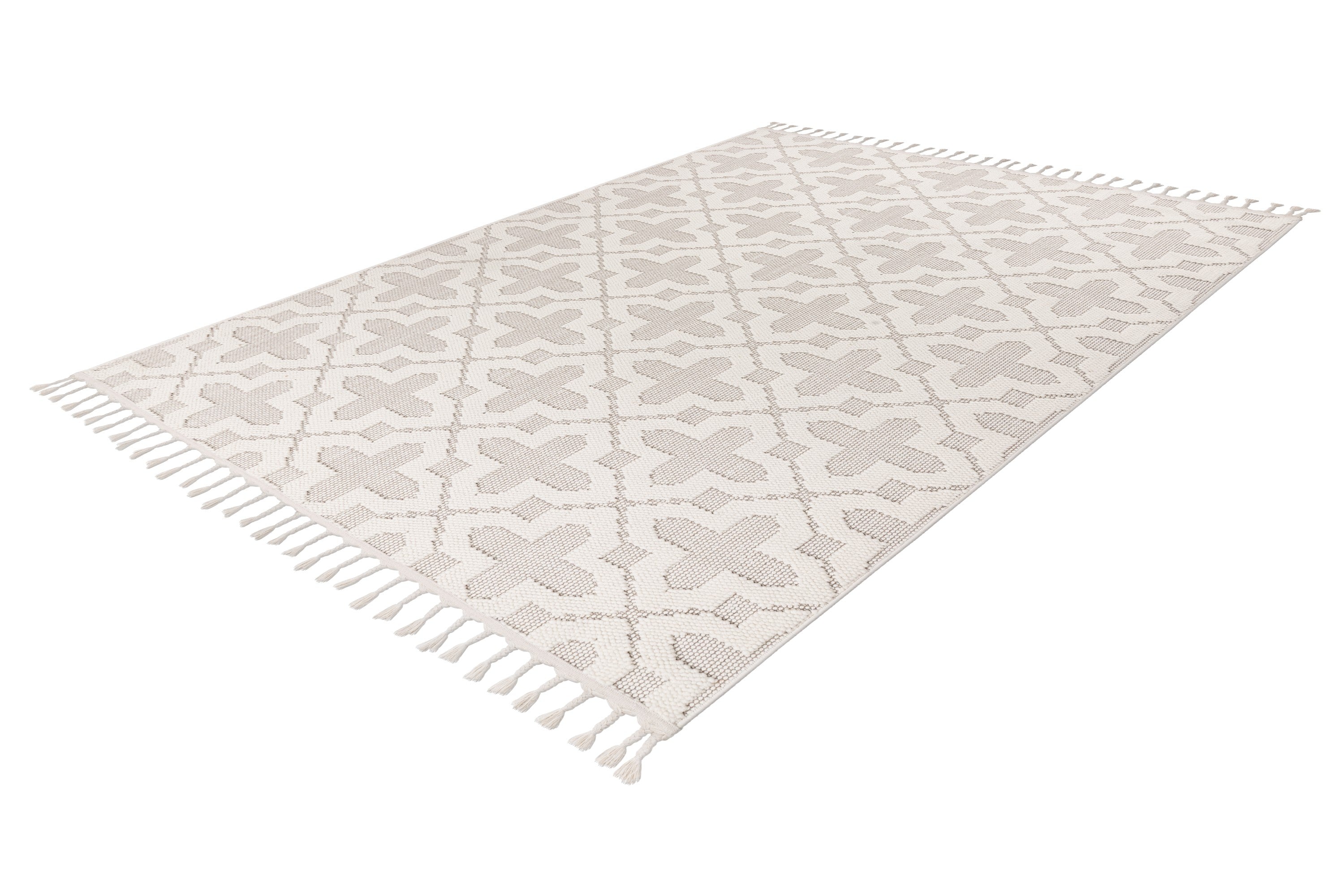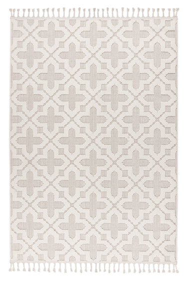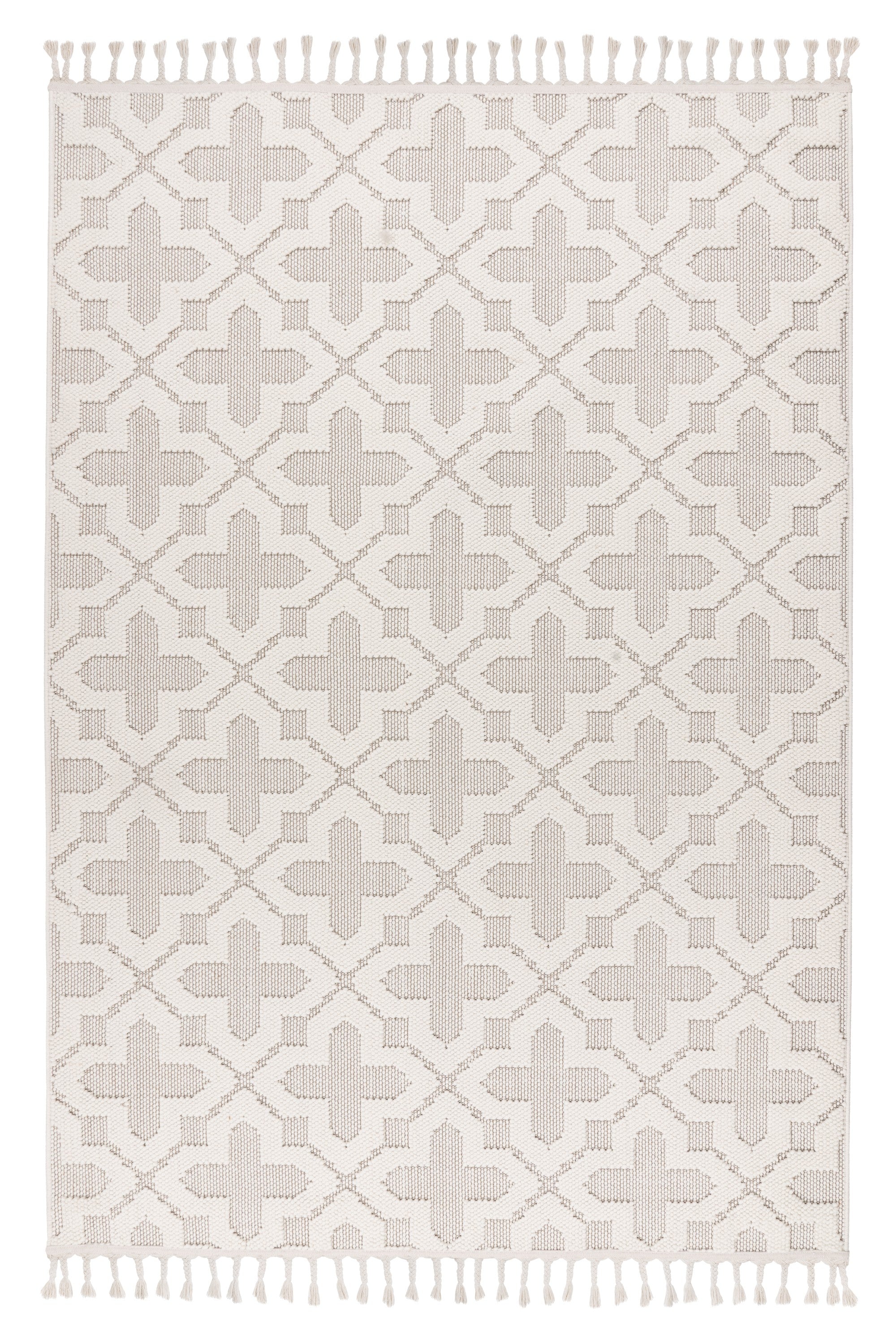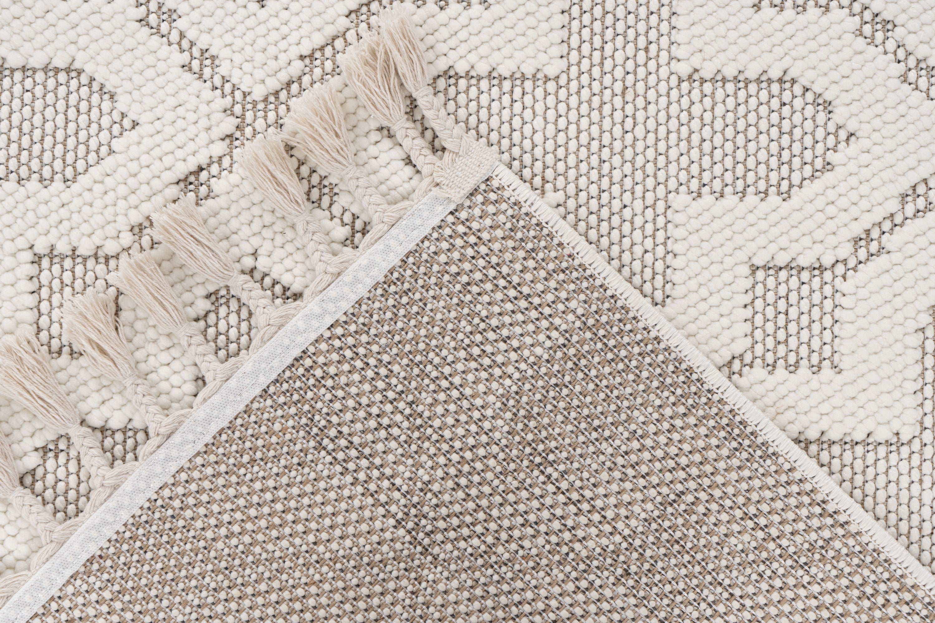 Dette maskinlavede tæppe kombinerer moderne teknologi med klassisk design og er udført i slidstærkt polyester af høj kvalitet. Med håndknyttede frynser får tæppet et elegant finish, der minder om traditionelt håndværk. Tæppet har en luksuriøs 3D-effekt, skabt gennem høj-lav mønster, hvilket giver det et unikt, dynamisk udseende og en visuel dybde, der skiller sig ud i ethvert rum.