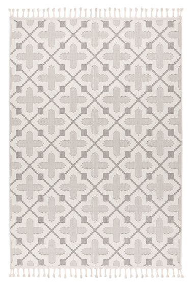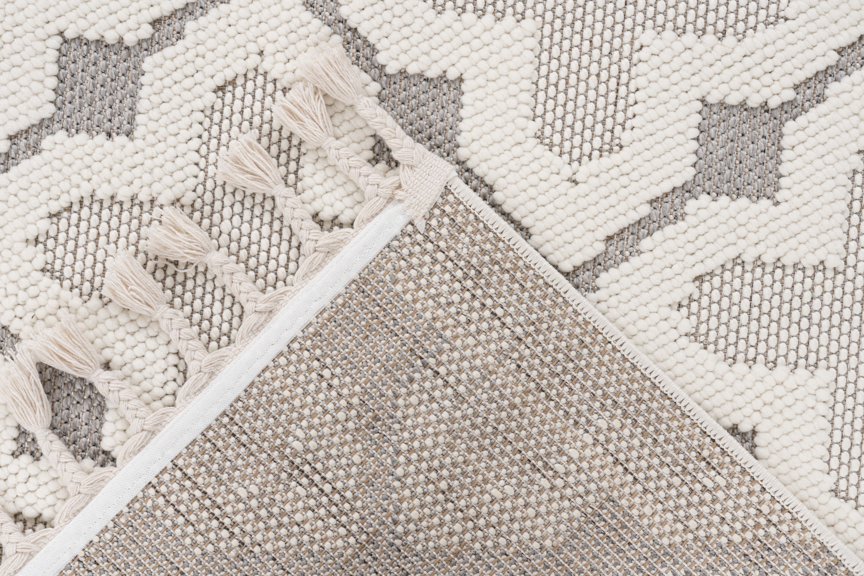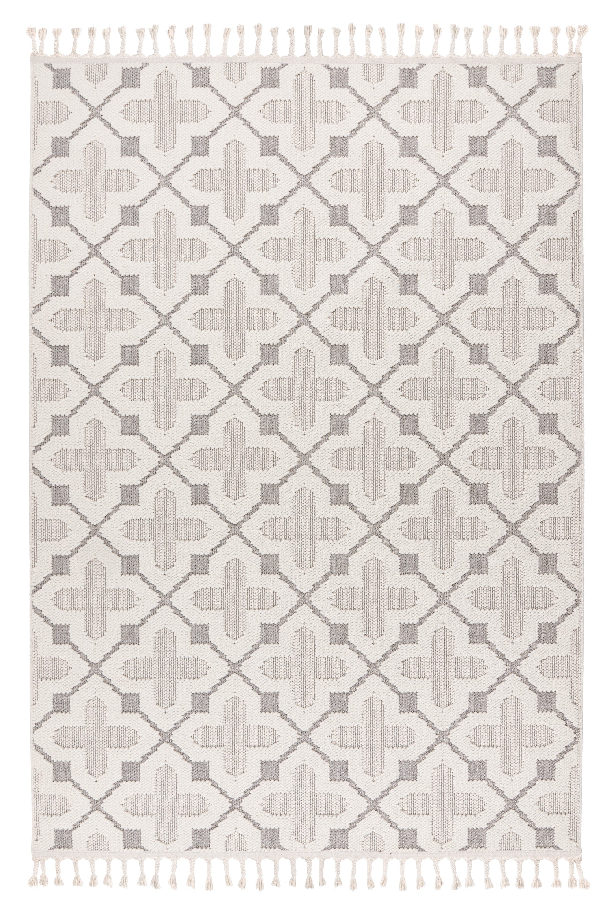 Dette maskinlavede tæppe kombinerer moderne teknologi med klassisk design og er udført i slidstærkt polyester af høj kvalitet. Med håndknyttede frynser får tæppet et elegant finish, der minder om traditionelt håndværk. Tæppet har en luksuriøs 3D-effekt, skabt gennem høj-lav mønster, hvilket giver det et unikt, dynamisk udseende og en visuel dybde, der skiller sig ud i ethvert rum.