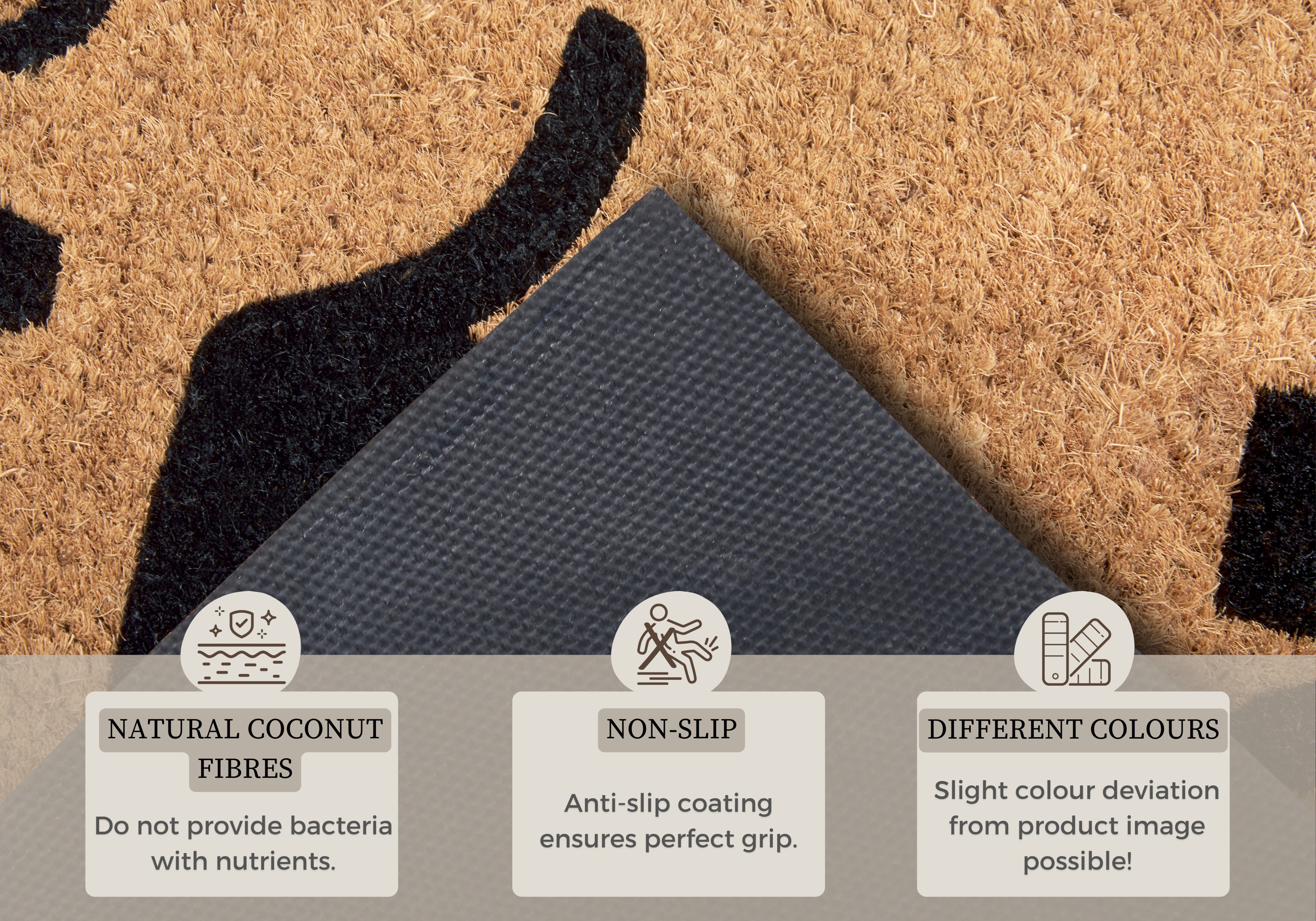 Kokosfibrene er naturligt antibakterielle og sørger for, at bakterier og snavs forbliver på måtten og ikke transporteres ind i din bolig. Måtten er velegnet til både indendørs og beskyttet udendørs brug, og den skridsikre latexbagside giver et sikkert fodfæste og beskytter dit gulv. Den er nem at rengøre og vedligeholde, hvilket gør den til et praktisk og holdbart valg.