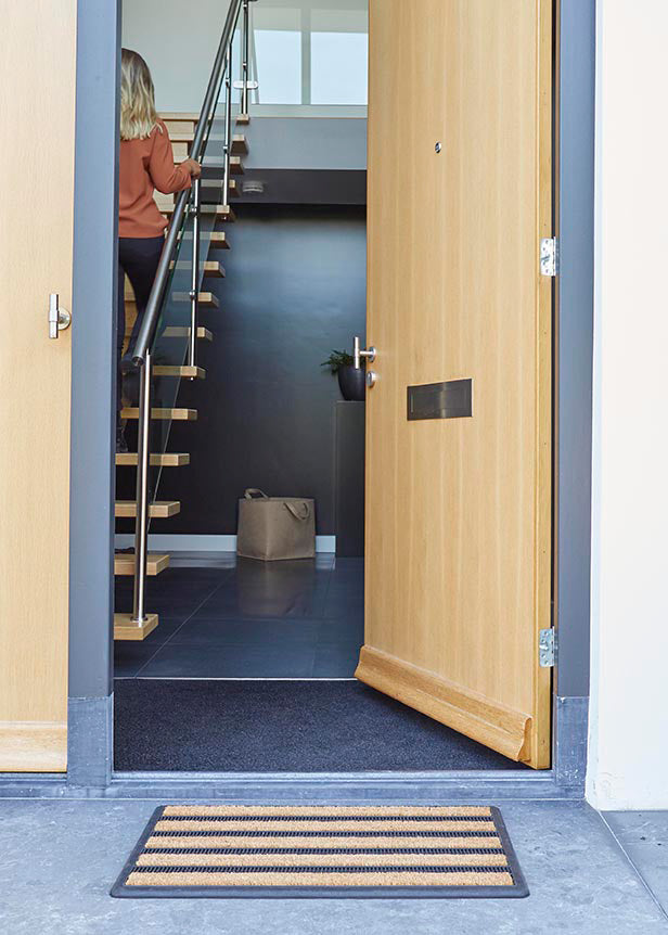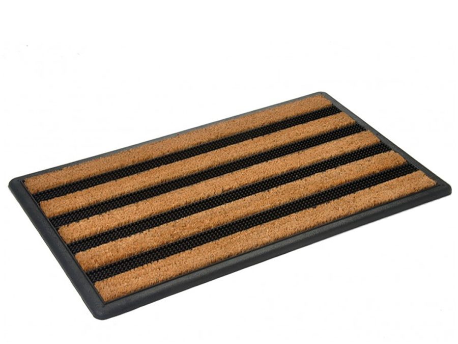 Denne dørmåtte kombinerer det naturlige kokos med det slidstærke gummi. En skrabemåtte med et robust design, der garanterer mange rene sko og støvler ved dørtrinnet.