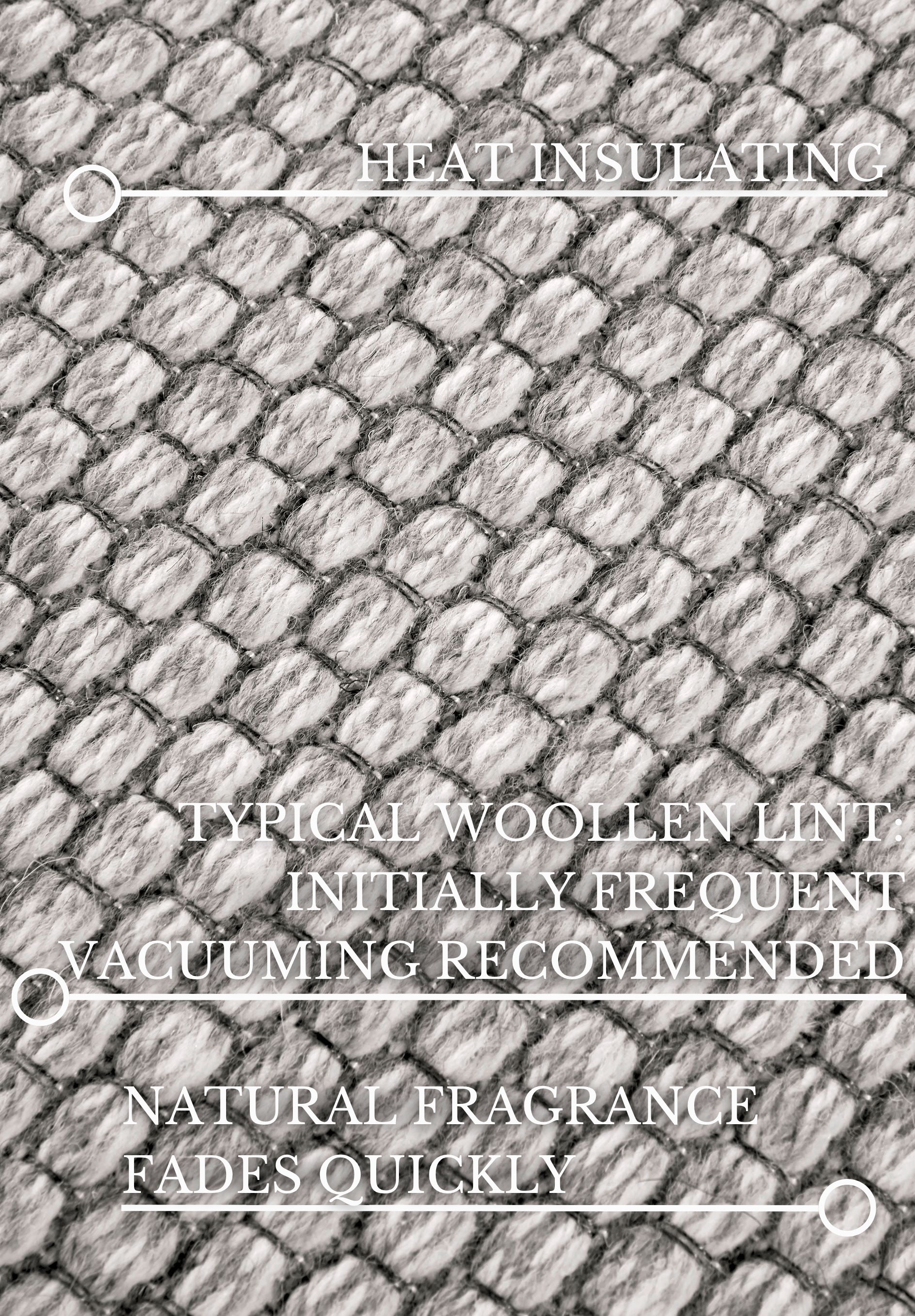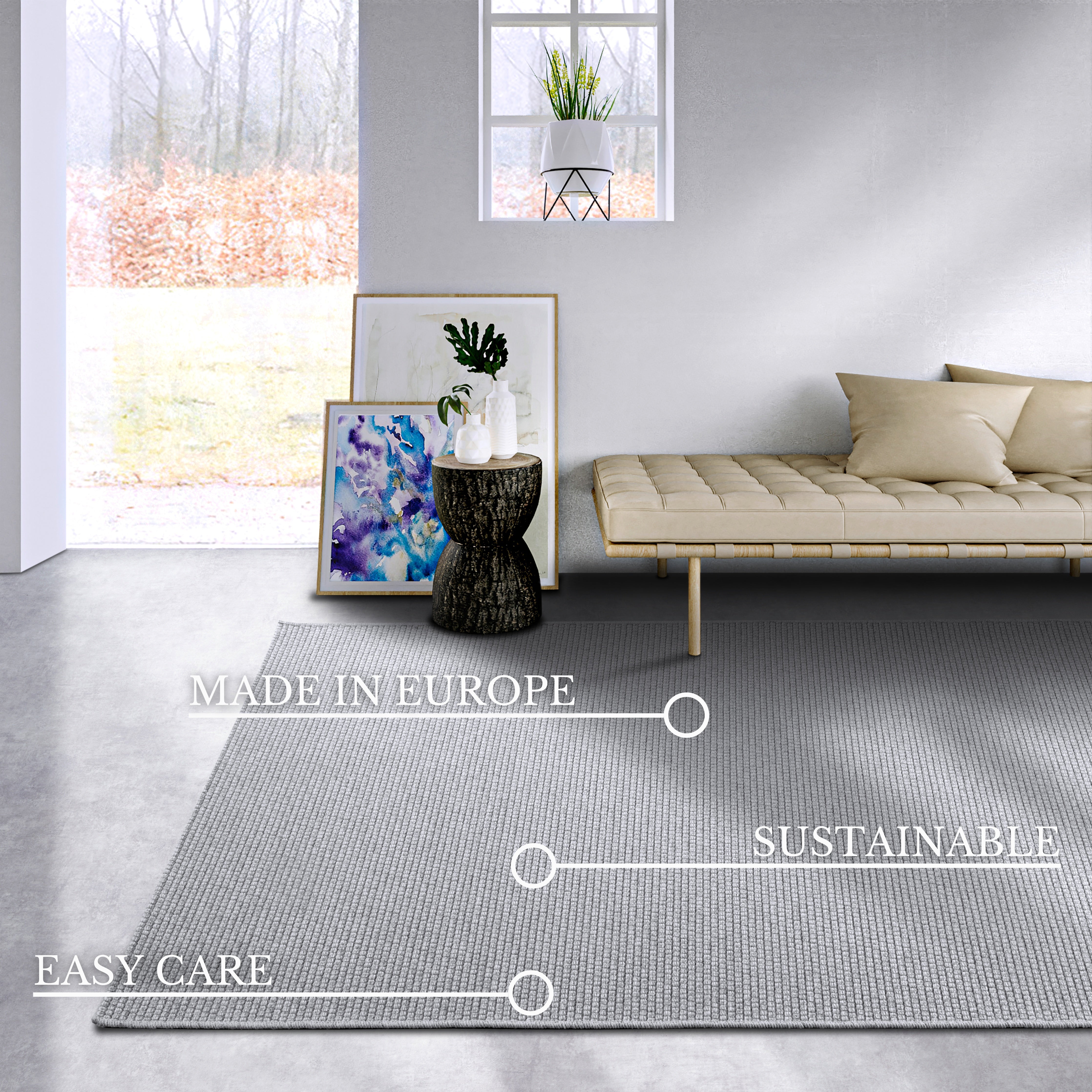 Dette tæppe er ikke bare smukt, det er også skabt til at holde. Den robuste bagside i en blanding af polyester (51,4%) og polypropylen (48,6%) sikrer stabilitet og forlænger tæppets levetid. Tæppets naturlige materialer gør hvert eksemplar unikt i sin farvesammensætning, og det er samtidig velegnet til gulvvarme. Den europæiske produktion understreger tæppets høje kvalitet og bæredygtige profil.