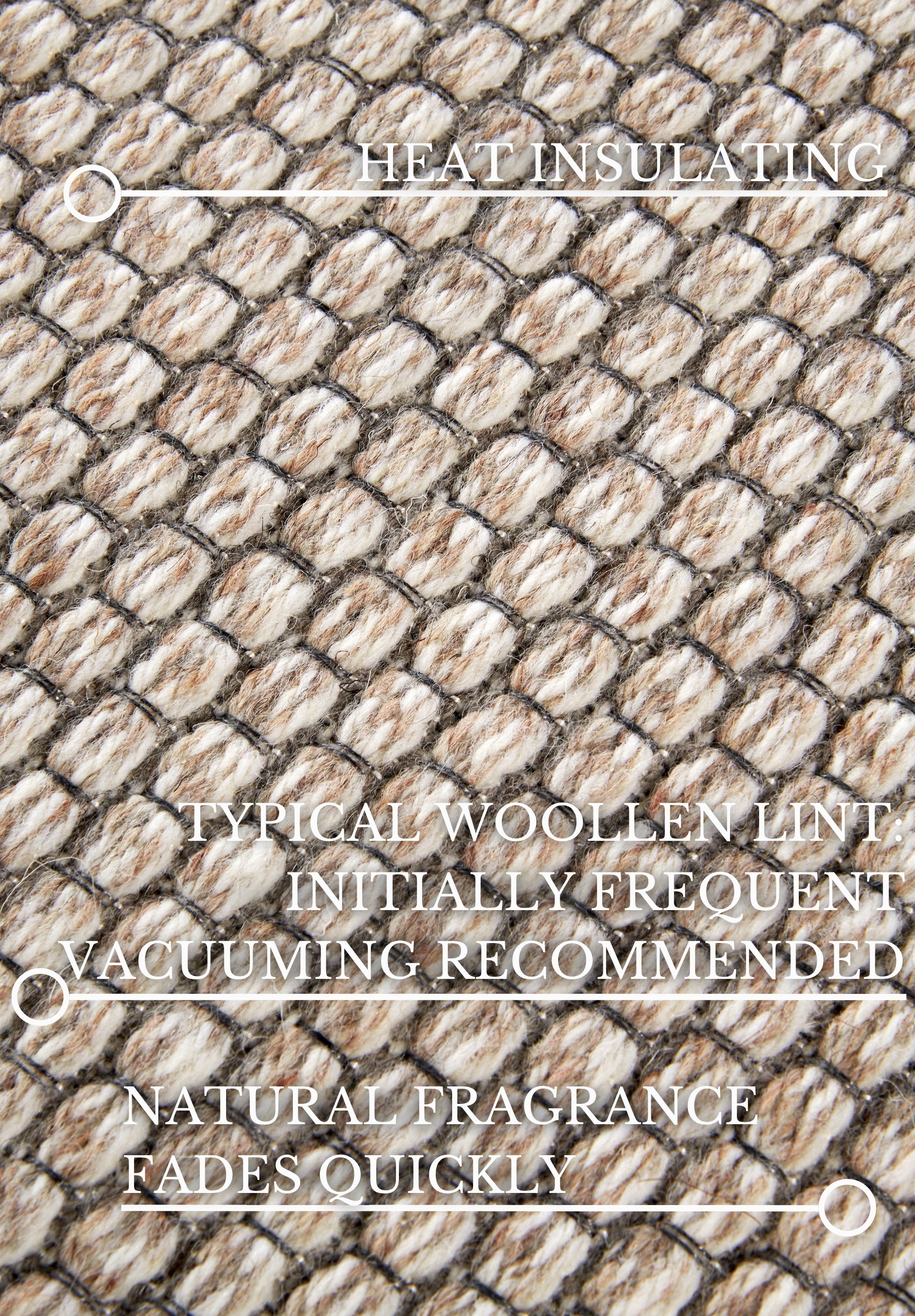 Udover sin æstetiske appel er dette tæppe også utroligt praktisk. Den robuste bagside, bestående af 51.4% polyester og 48.6% polypropylen (PP), sikrer et stabilt underlag og forlænger tæppets levetid. Tæppet er fremstillet i Europa af naturlige materialer, hvilket gør hvert tæppe unikt i sin farvekonstellation. Den naturlige uld er velegnet til gulvvarme, slidstærk og nem at vedligeholde, hvilket gør det til et ideelt valg for travle husholdninger. Nyd den naturlige skønhed og holdbarhed, som dette tæppe tilbyder.