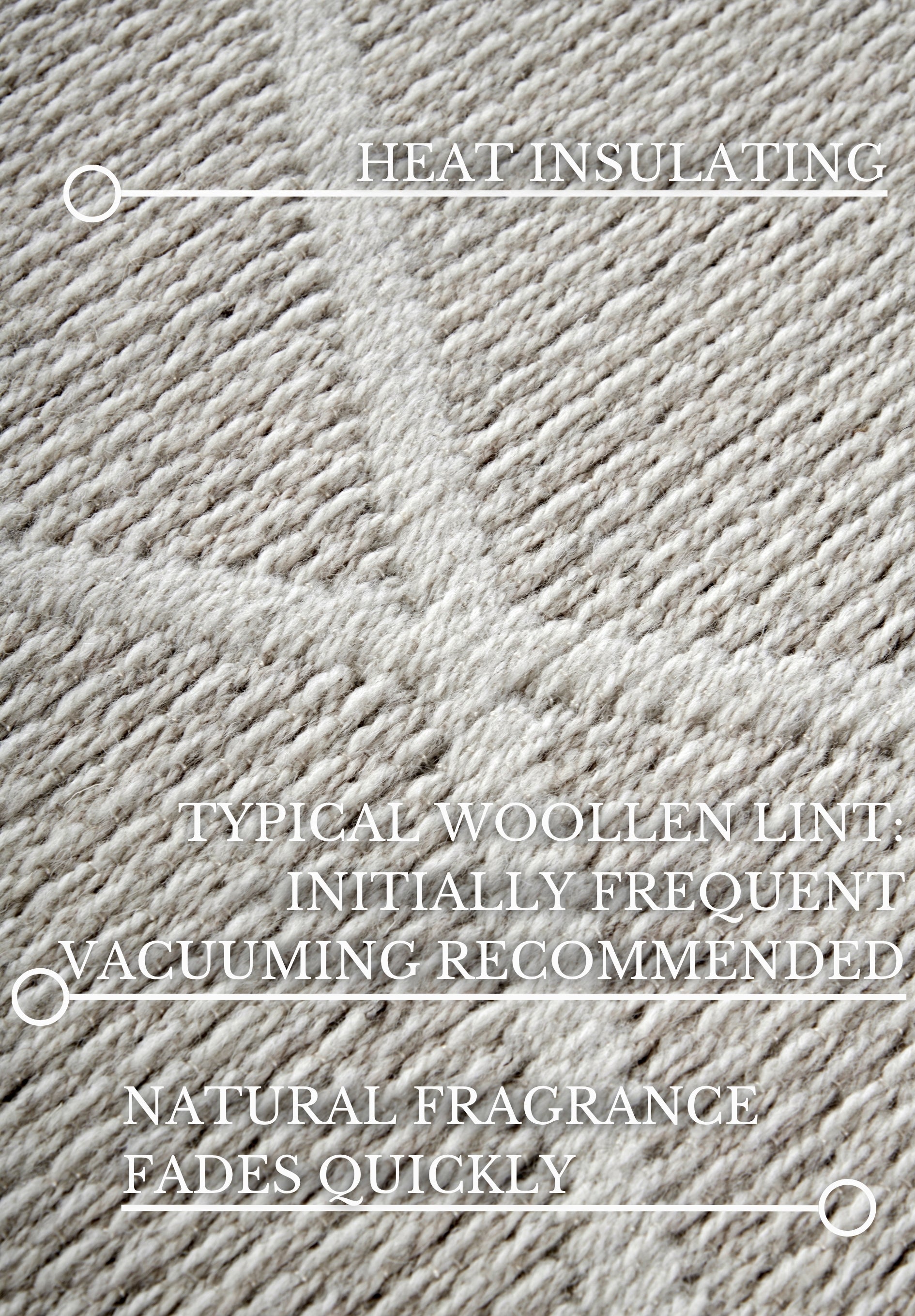 Dette tæppe er ikke kun smukt, men også praktisk og holdbart. Bagsiden, bestående af en blanding af polyester og polypropylen (51.4% polyester, 48.6% PP), giver tæppet stabilitet og forhindrer det i at glide. Den naturlige uld er robust og nem at vedligeholde, samtidig med at den er velegnet til gulvvarme. Hvert tæppe er unikt i sin farvesammensætning takket være de naturlige materialer, hvilket tilføjer et autentisk præg til dit hjem. Den europæiske produktion garanterer høj kvalitet og bæredygtighed.
