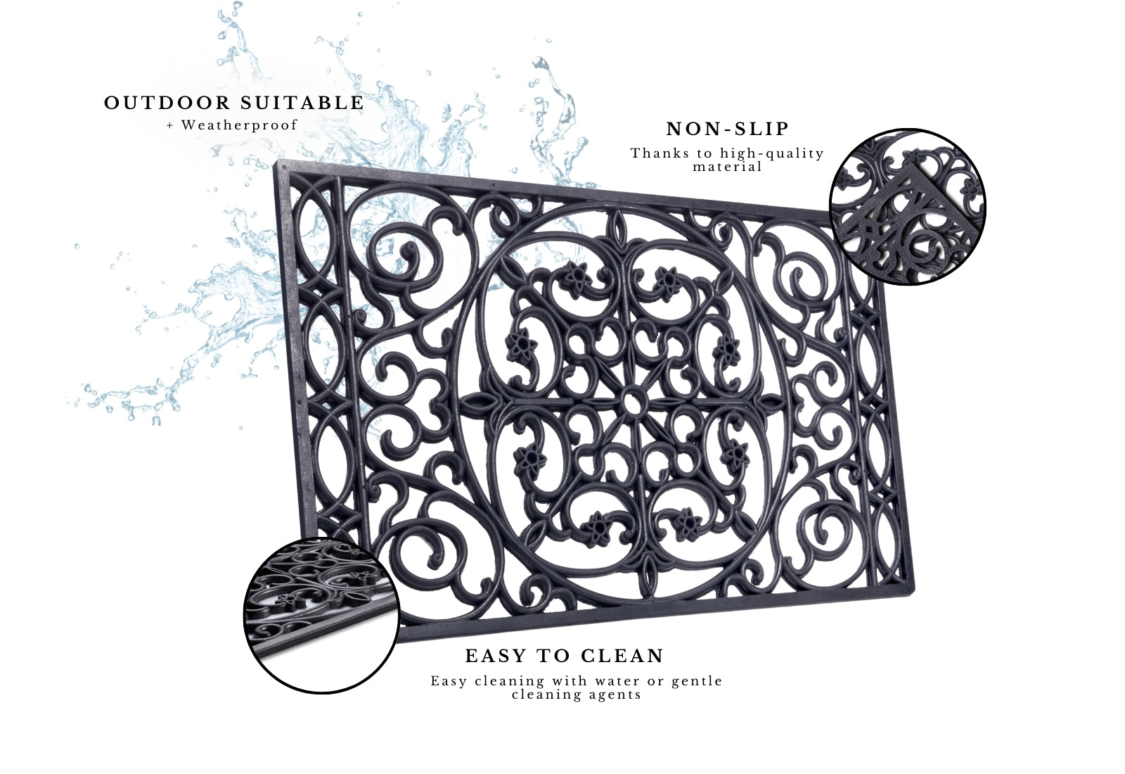 Mix Mats måtten er designet til at modstå daglig slid og vind og vejr. Den skridsikre gummibagside sørger for, at måtten ligger stabilt på plads, selv på glatte overflader, og beskytter samtidig dit gulv mod snavs og ridser. Den er yderst slidstærk og modstandsdygtig over for fugt, hvilket gør den ideel til det danske klima. Det unikke støbejernslook giver måtten et karakteristisk udseende, der vil imponere dine gæster. Den er let at rengøre og vedligeholde, så du kan nyde dens funktion og stil i mange år.