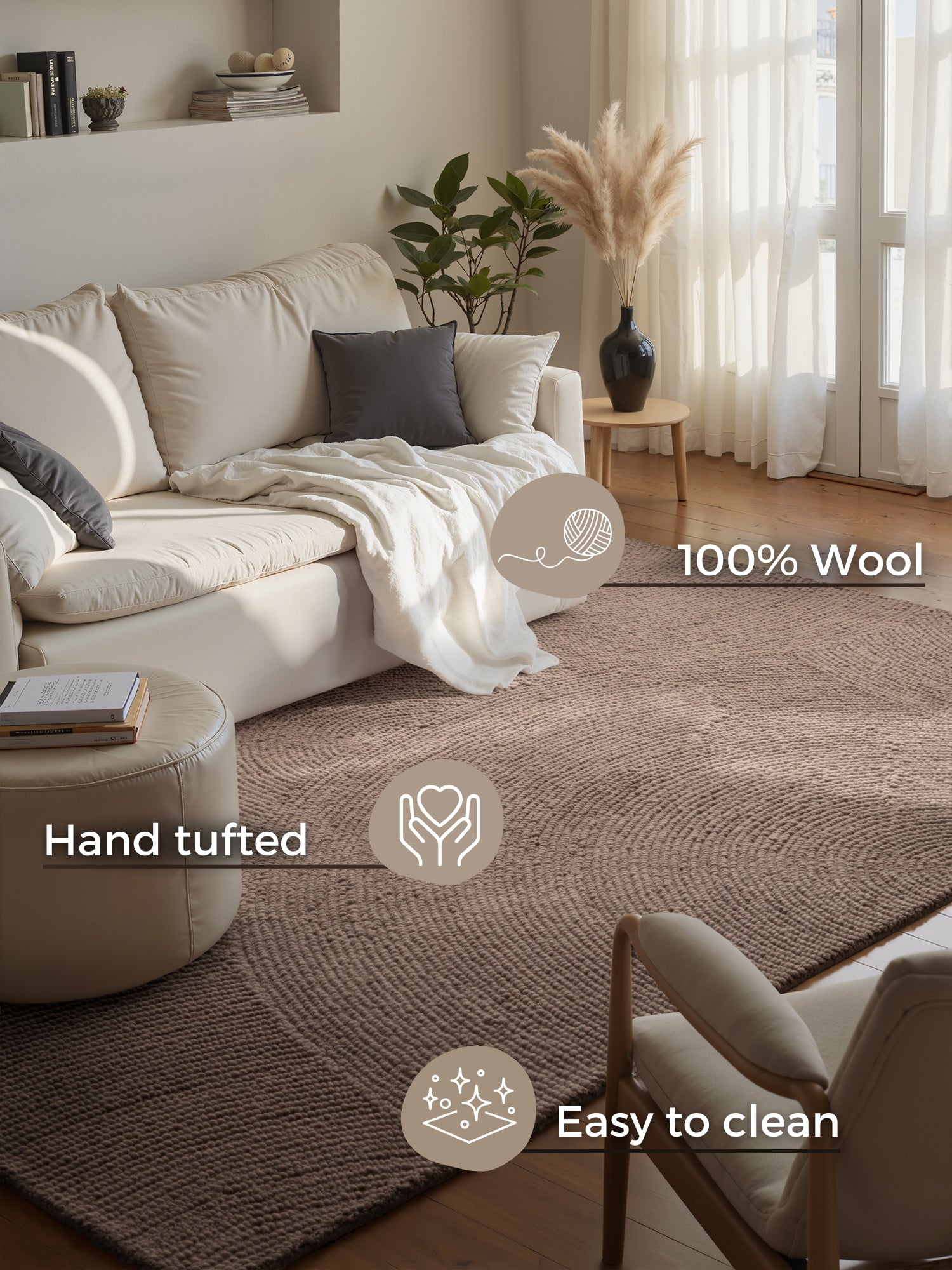 Eleni tæppet er håndtuftet, hvilket vidner om høj kvalitet og håndværk. Den robuste konstruktion i 100% uld gør tæppet utrolig slidstærkt og nemt at vedligeholde. Bagsiden i 100% genanvendt bomuld tilføjer et ekstra lag af komfort og bidrager til tæppets bæredygtighed. Eleni er desuden velegnet til gulvvarme, så du kan nyde den bløde uld året rundt. Den naturlige uldfiber gør tæppet robust og sikrer langvarig glæde.