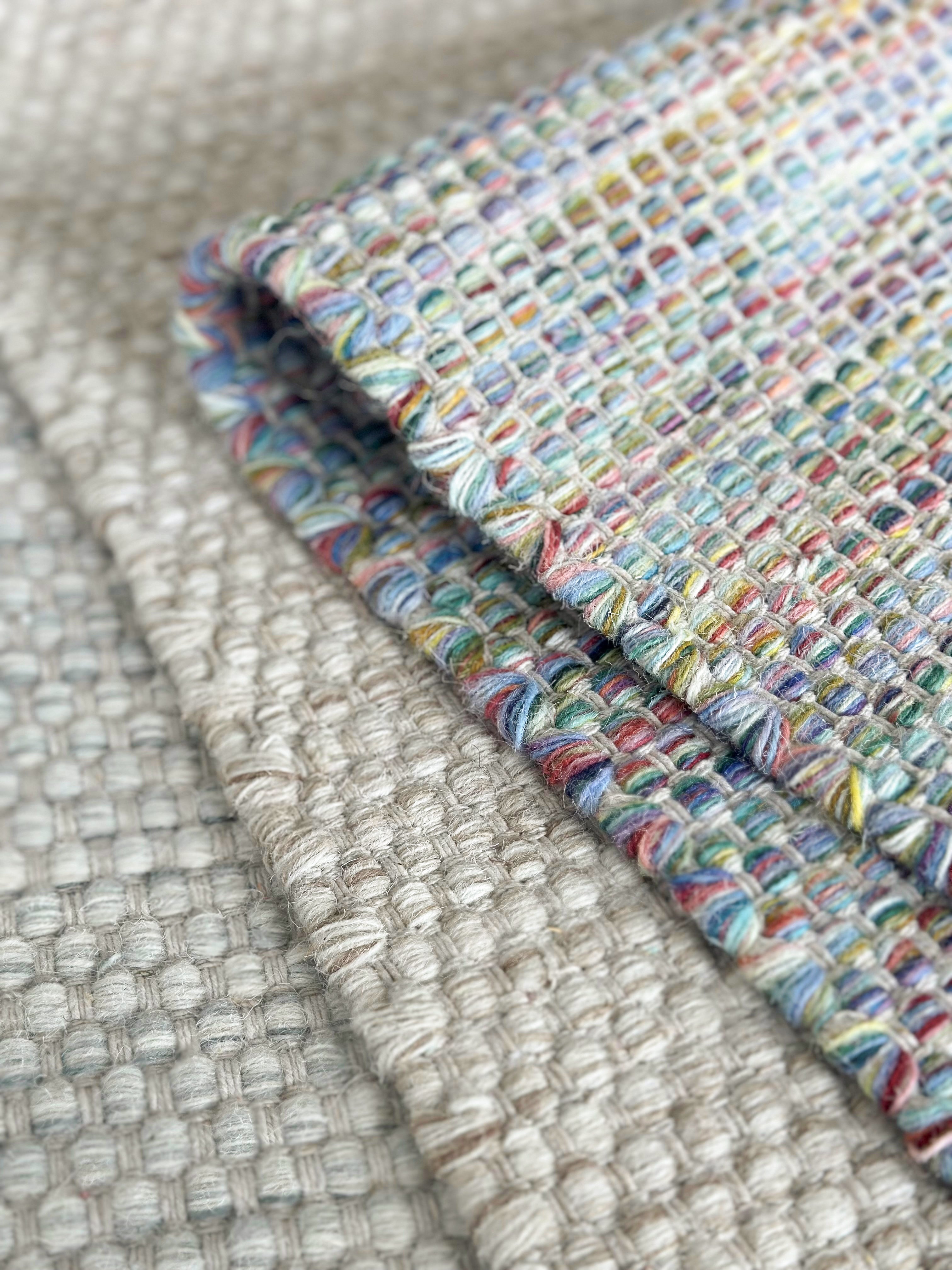 Dette tæppe er virkelig lækkert og smukt at se på. Det er håndvævet af 80% uld og 20% bomuld. Findes i farverne multi og nature.