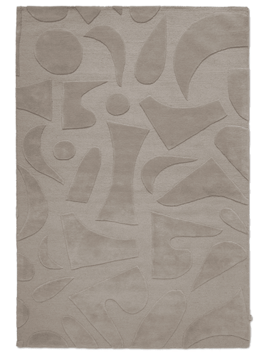Det ton-i-ton design fremhæves subtilt af den taktile kontrast i luvens højde, som danner et abstrakt mønster inspireret af organiske former og geometriske figurer. Her finder du bløde kurver, skarpe vinkler og grafiske elementer, der nærmest fremstår som en collage af form og bevægelse. De udskårne former giver tæppet et tredimensionelt udtryk, som tilføjer dybde og dynamik uden at virke larmende – perfekt til det moderne hjem, hvor kvalitet og rolig æstetik går hånd i hånd.