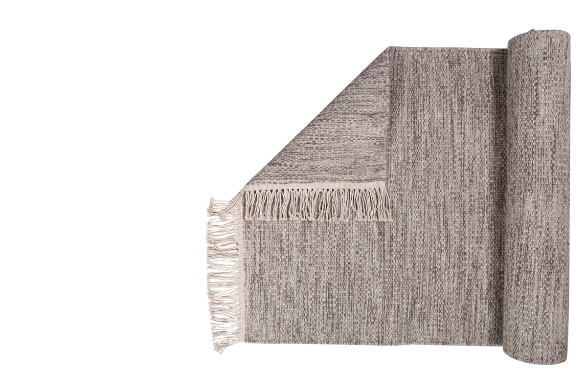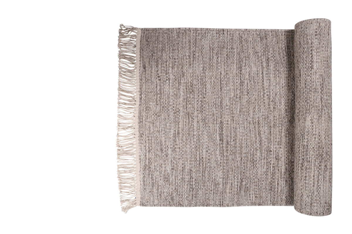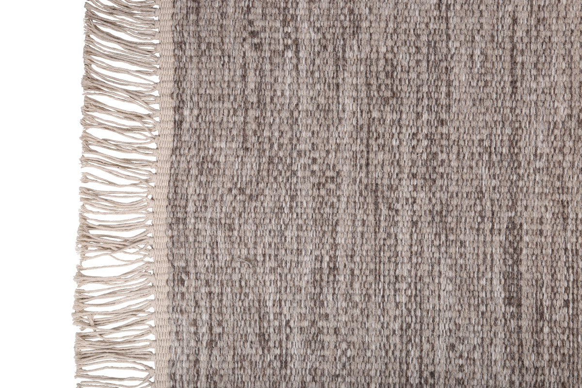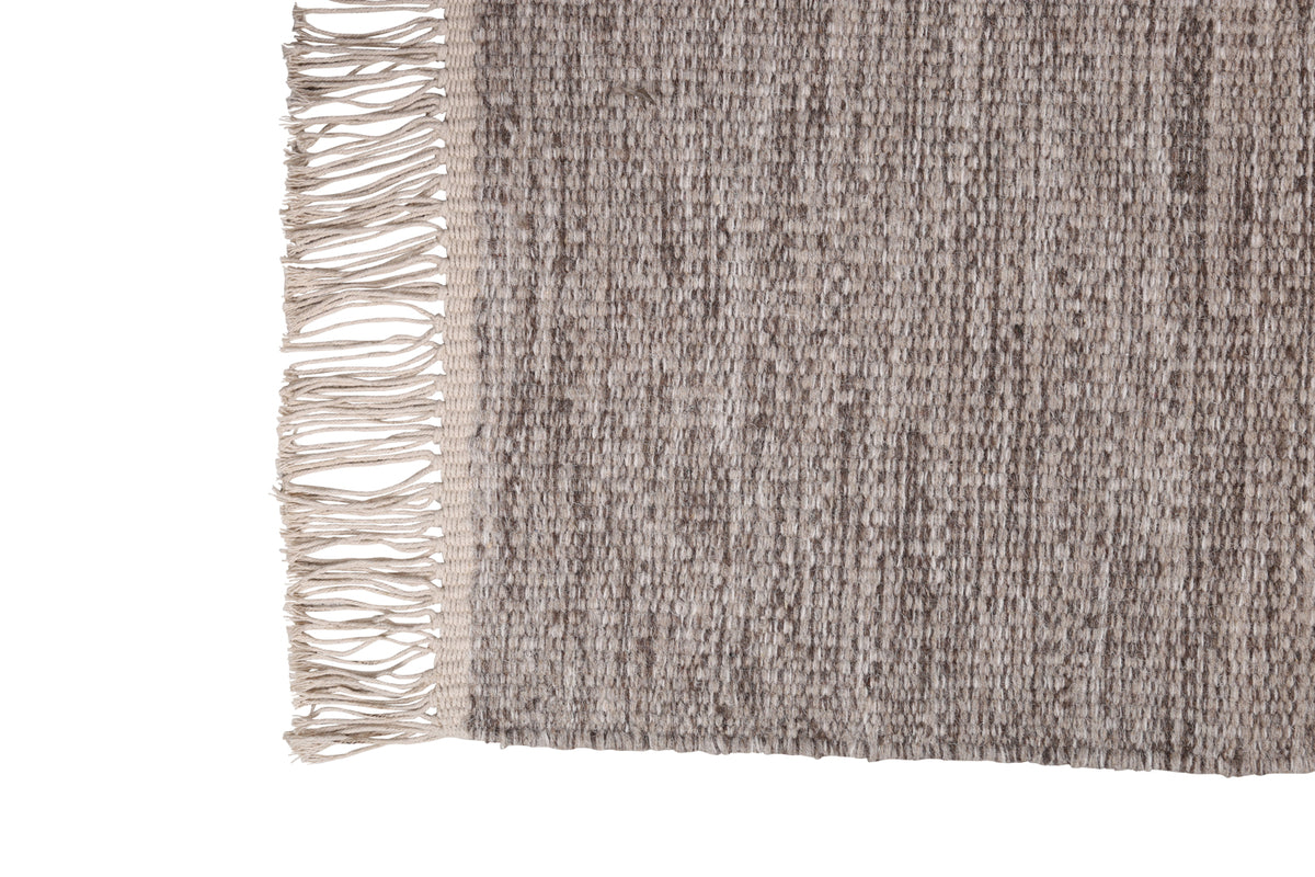 Et stilrent uldtæppe i en jordfarve er præcis, hvad der skal til for at skabe en behagelig og moderne atmosfære i stuen! Dette rektangulære tæppe i et moderne design er en del af Cyrus tæppeserien, som tilbyder håndvævede uldtæpper i forskellige farver og størrelser – vælg det, der passer bedst til dit hjem. Tæppet har et meleret mønster i beige og brune nuancer og dekorative frynser på de korte sider. Uldtæppets egenskaber gør det nemt at placere i de fleste rum, da materialet er robust og slidstærkt. Følg vores plejeråd, og du får et trofast tæppe, der holder længe. Tips til uldtæpper: Uld er et natur materiale, der både er slidstærkt og smudsafvisende. I løbet af de første uger afgiver tæppet normalt uldfibre, der er blevet overflødige siden fremstillingen. For at undgå at der sætter sig snavs i tæppet, bør et uldent tæppe støvsuges regelmæssigt, gerne mindst en gang om ugen. Pletter på uldtæpper skal fjernes med det samme ved at bruge køkkenrulle eller en ren klud for at absorbere hurtigt.