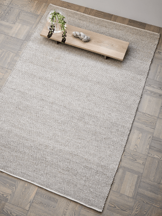 Merino-tæppet er et håndvævet uldtæppe med en blød og behagelig tekstur, der minder om merinould. Det er fremstillet af en omhyggeligt afbalanceret blanding af 85% newzealandsk uld og 15% europæisk uld, hvilket resulterer i en naturligt slidstærk og smudsafvisende overflade. Små kuglevævede løkker giver et unikt look.