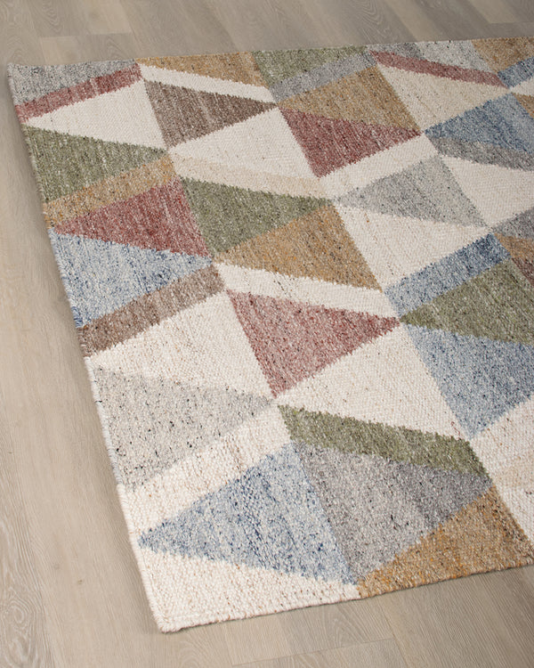 Milo er et håndvævet tæppe i uld, viskose og bomuld, skabt med et karakteristisk, geometrisk mønster, der giver rummet liv og karakter. De naturlige materialer tilføjer en behagelig struktur og et diskret spil i overfladen, som fremhæver det håndlavede udtryk. Et tæppe med personlighed og charme, der passer perfekt til både moderne og klassiske hjem.