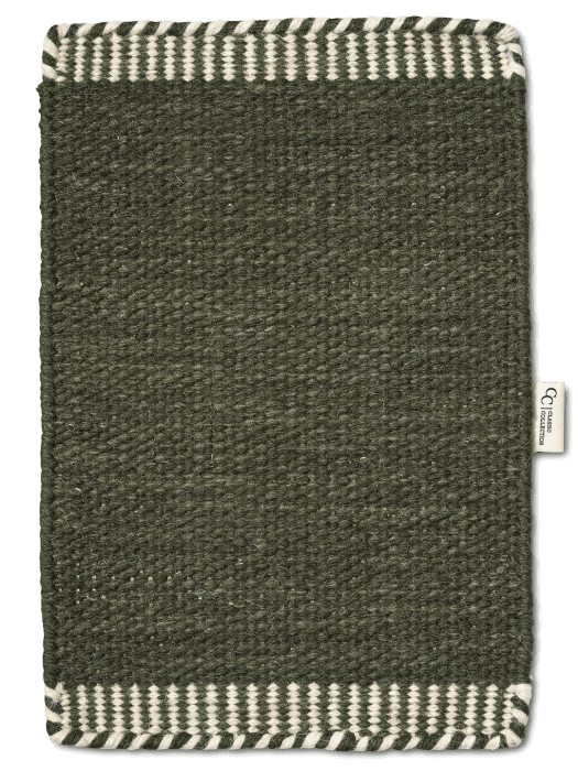 Pure Skovgrøn er et håndvævet, fladvævet uldtæppe lavet af 100% naturlige materialer. Dets vendbare design forlænger holdbarheden og giver mulighed for alsidig brug.