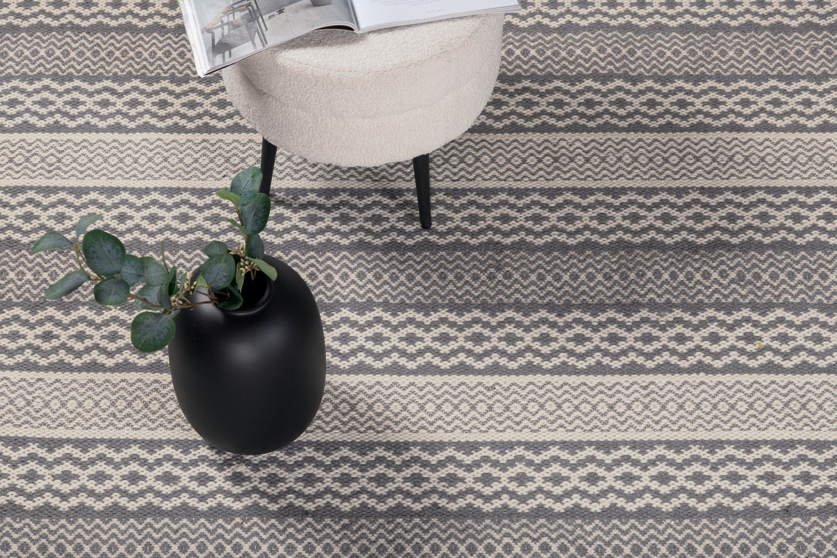 Indret dit hjem med en flot indretnings detalje, der skaber en hyggelig og moderne følelse i rummet. Dette smukke håndvævede uldtæppe i Sishu-serien har et dekorativt mønster i en lysegrå nuance. Den praktiske rektangulære størrelse og imponerende materiale gør, at tæppet vil passe ind i de fleste rum og med garanti vil forstærke den hjemlige atmosfære. Gør dig selv og dit hjem en tjeneste og invester i et slidstærkt uldtæppe, der vil bistå tidens trend! Plejeanvisning: Uld er et natur materiale, der både er slidstærkt og smudsafvisende. Pletter på uldtæpper skal fjernes med det samme ved at bruge køkkenrulle eller en ren klud for at absorbere hurtigt. Hvis pletten allerede er suget ind i tæppet, kan en klud med varmt vand være en god løsning, hvis kun lunkent vand ikke er nok, kan der tilsættes en lille smule mildt rengøringsmiddel.