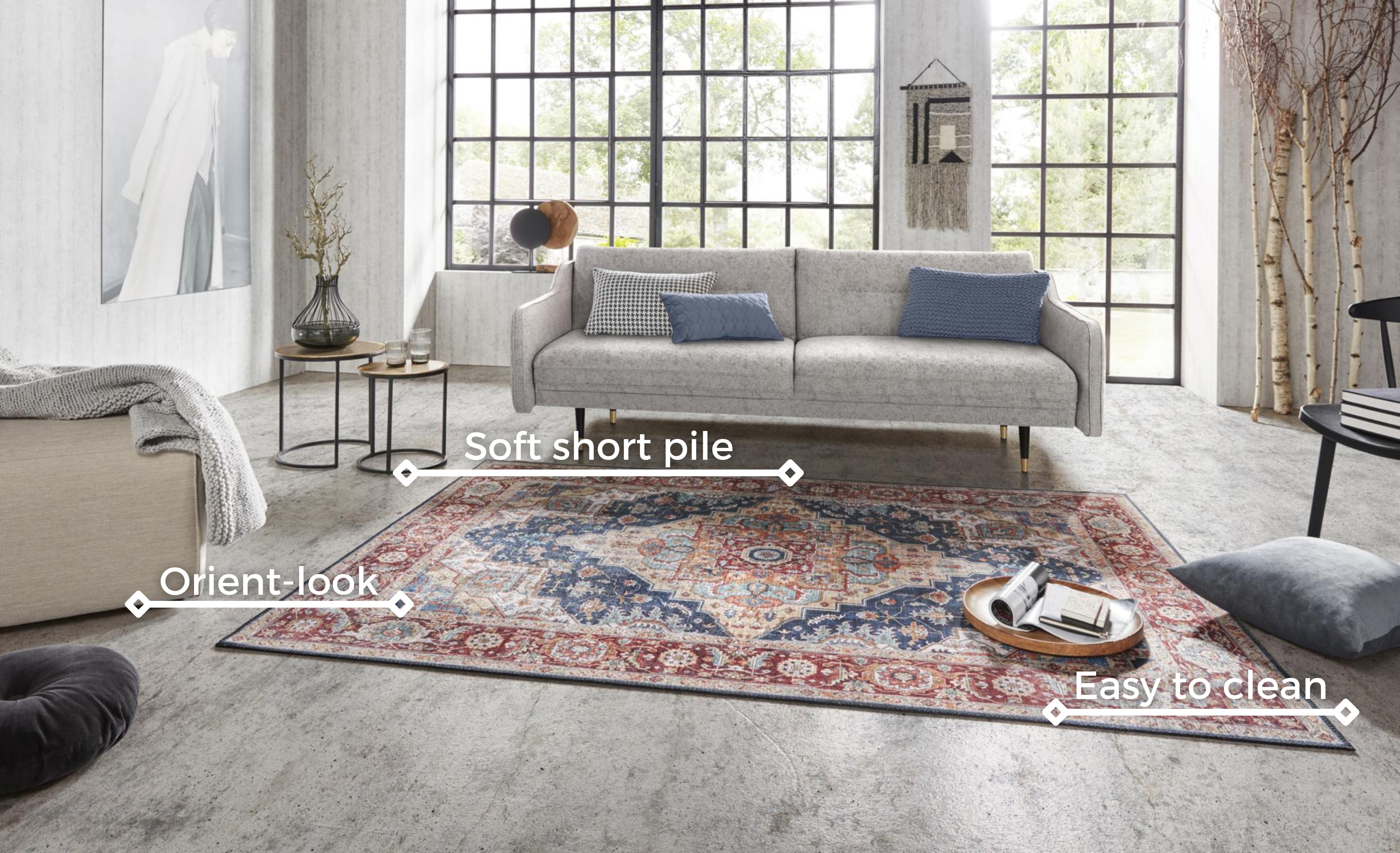 Forkæl dit hjem med den klassiske elegance og livlige farver fra Asmar-tæppet i en smuk blå nuance. Dette 100% polyestertæppe fra Hanse Home's Asmar-kollektion tilføjer et strejf af orientalsk mystik til ethvert rum, samtidig med at det tilbyder en blød og behagelig overflade.