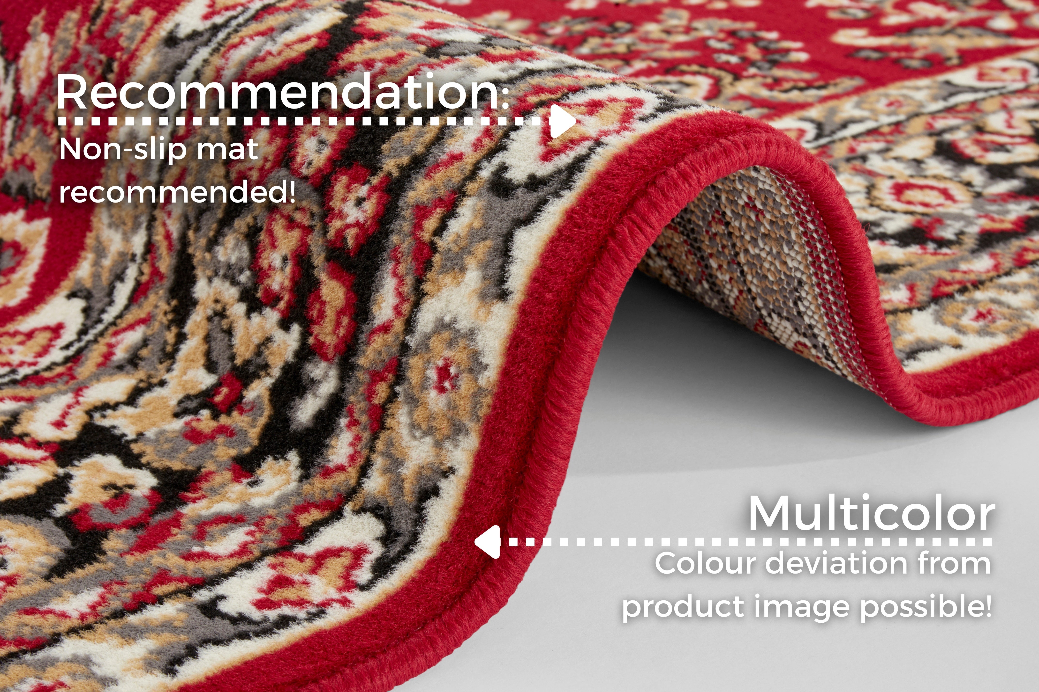 Med en luvhøjde på 0.8 mm føles tæppet behageligt blødt under fødderne. Rengøring er let som en leg – blot anvend tæpperens eller shampoo efter behov. Giv dit hjem et strejf af orientalsk charme med "Oriental - 104352 Rød".