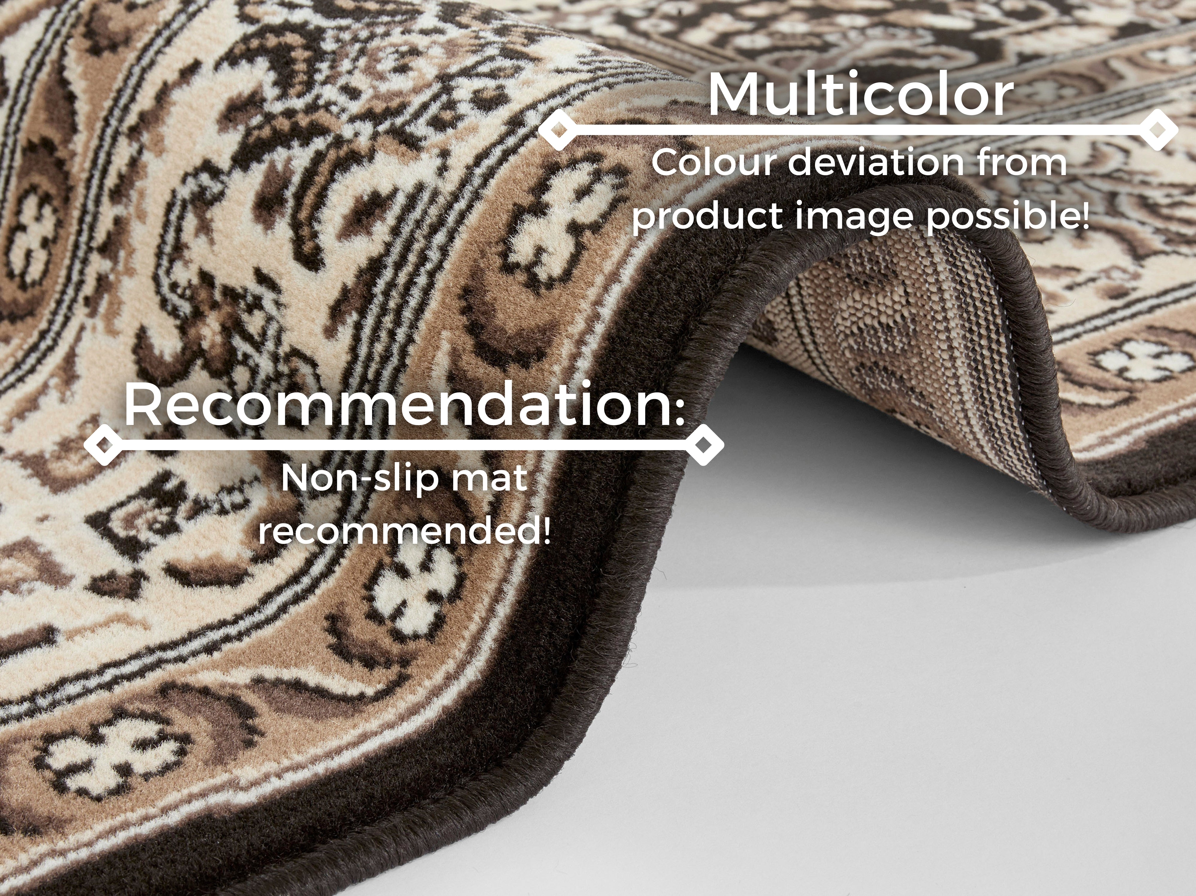 Mirkan-tæppet har en luvhøjde på 0.9 mm, der giver en behagelig og blød fornemmelse. Rengøring er let og kan gøres med almindelig tæpperens eller tæppeshampoo. Giv dit hjem et strejf af orientalsk charme med Mirkan-tæppet fra Hanse Home.