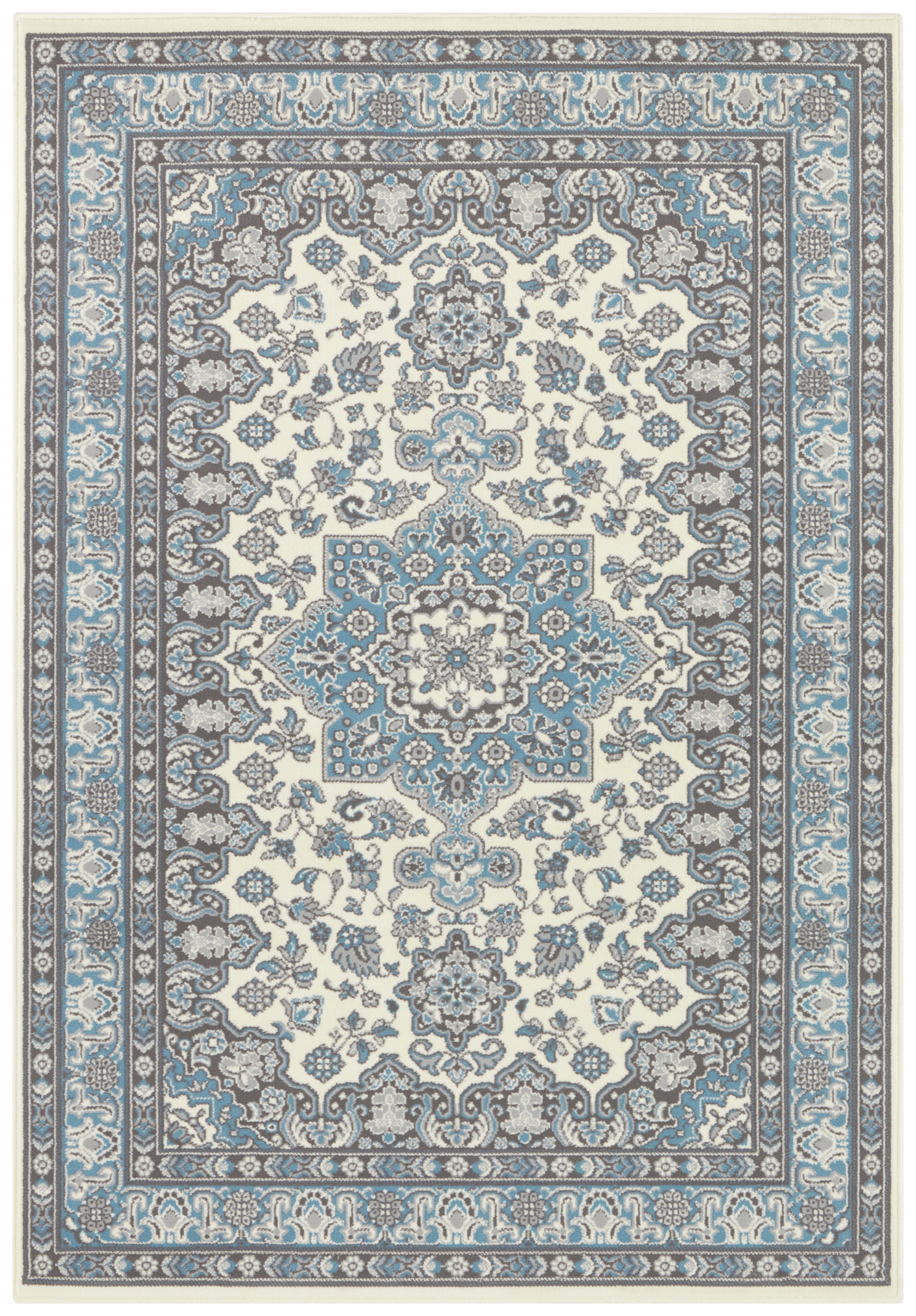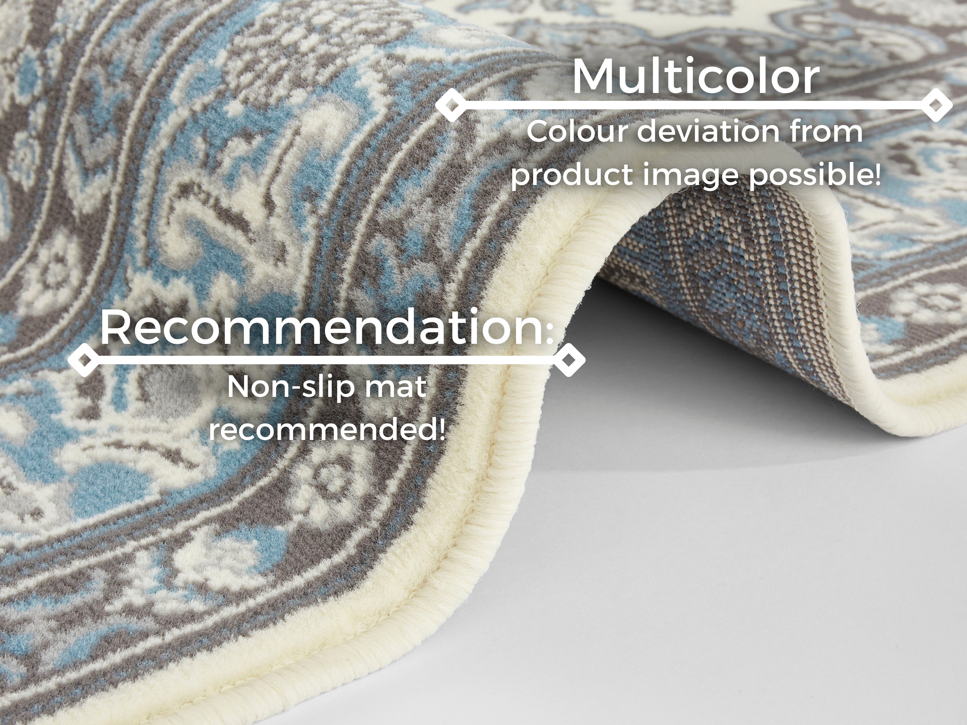 Forkæl dit hjem med et strejf af orientalsk elegance med Mirkan-tæppet (104442 Creme/Blå) fra Hanse Home. Dette smukke tæppe, vævet i 100% polypropylen, skaber en varm og indbydende atmosfære i ethvert rum med sine livlige creme- og blå nuancer.