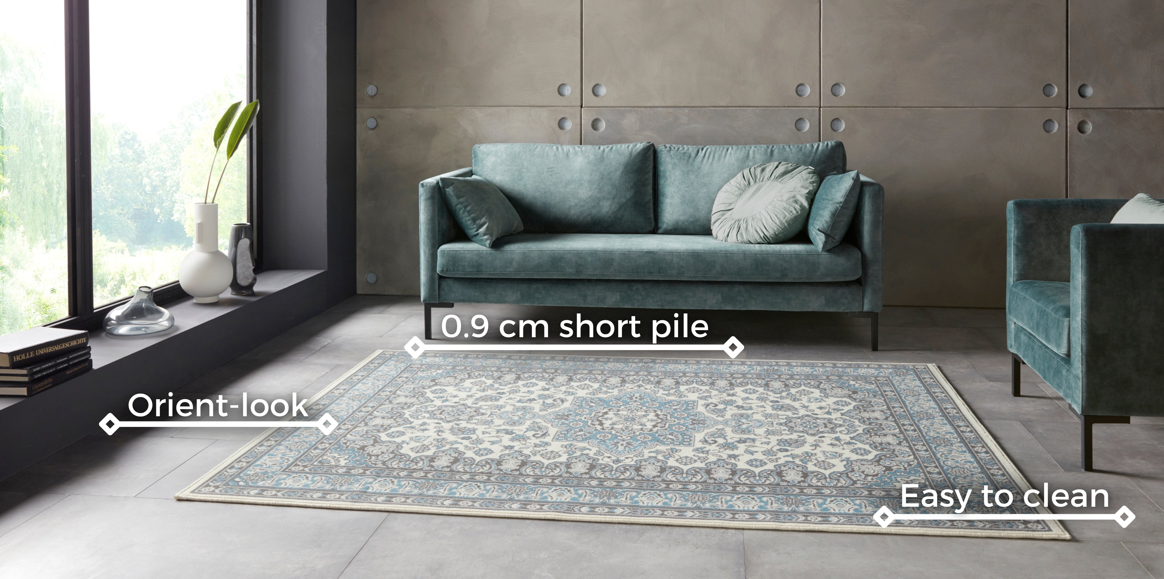 Mirkan-tæppets bløde, korte luv giver en behagelig følelse under fødderne, mens det orientalske design tilføjer et strejf af eksotisk charme. Den robuste jutebagside sikrer ikke kun stabilitet og forhindrer tæppet i at glide, men tilføjer også et ekstra lag af holdbarhed. Det slidstærke polypropylen-materiale gør tæppet nemt at rengøre og modstandsdygtigt over for daglig slitage, hvilket gør det perfekt til travle hjem. Tæppet er desuden velegnet til alle gulvtyper, inklusive gulvvarme.