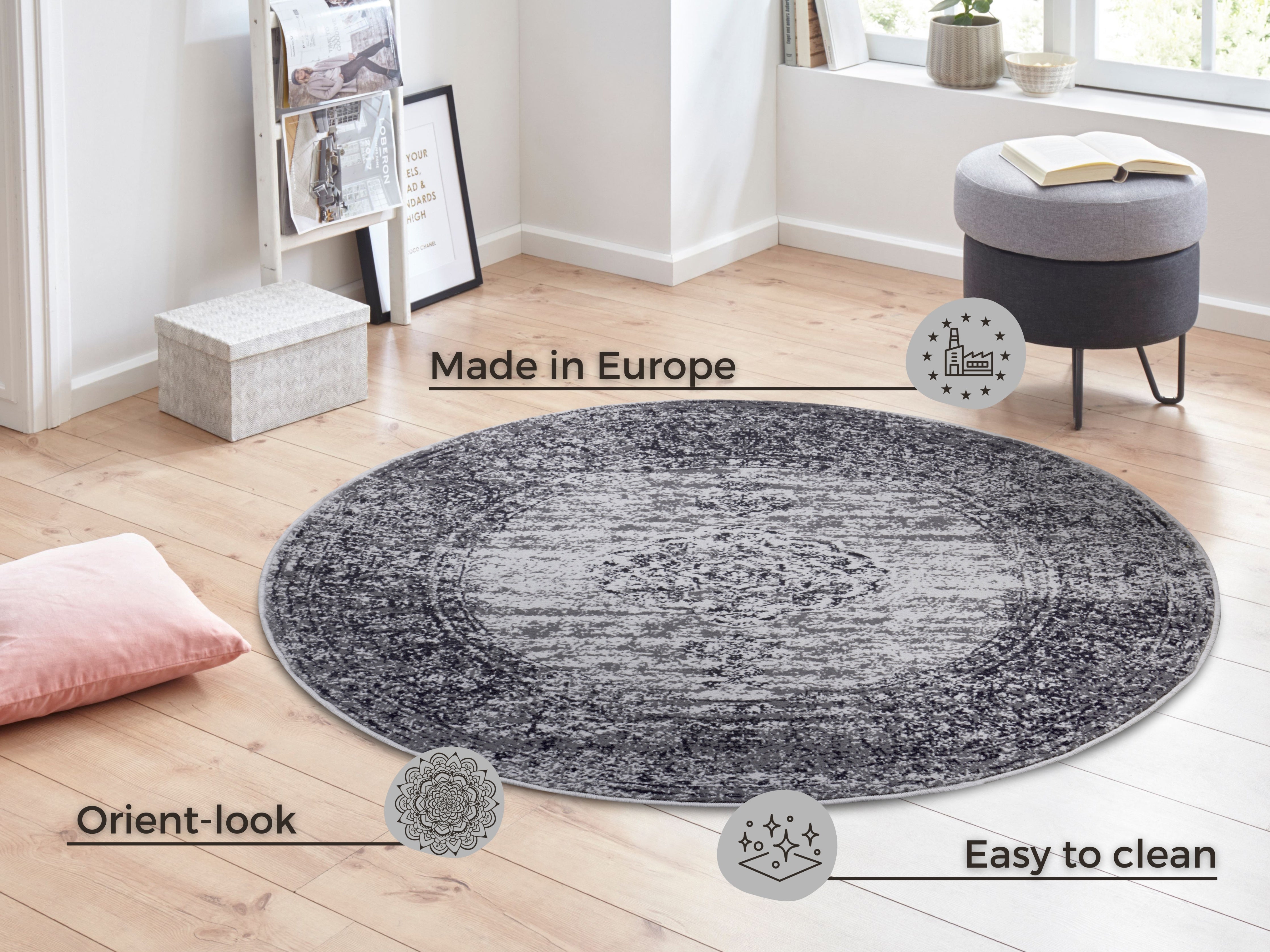 Tilføj et strejf af orientalsk elegance til dit hjem med Gloria-tæppet. Dette smukke, runde tæppe er fremstillet af 100% polypropylen, der giver en blød og behagelig overflade, samtidig med at det er utrolig slidstærkt og nemt at vedligeholde. Den grå farve giver en rolig og afbalanceret atmosfære, der passer perfekt ind i den moderne indretning.