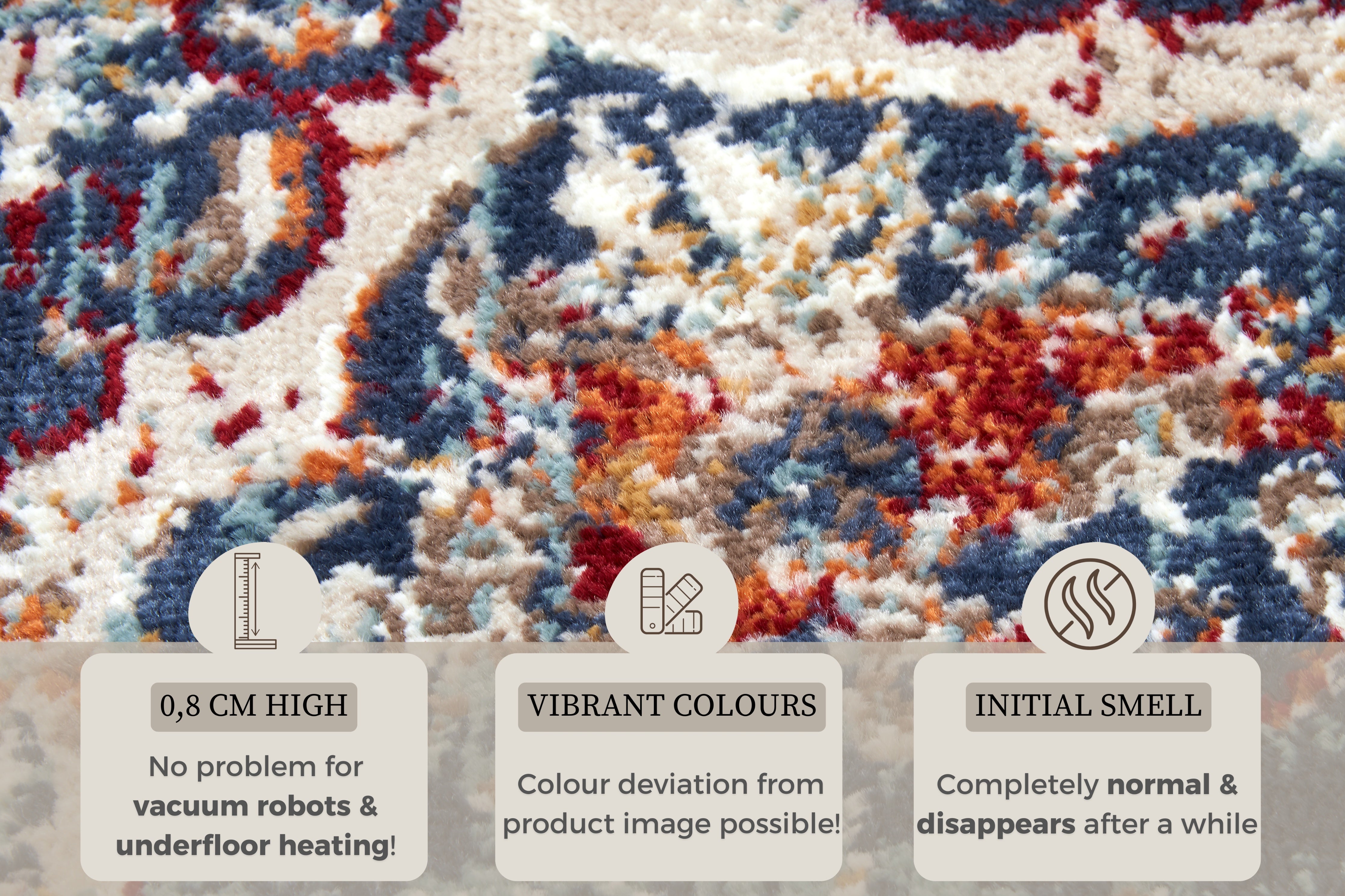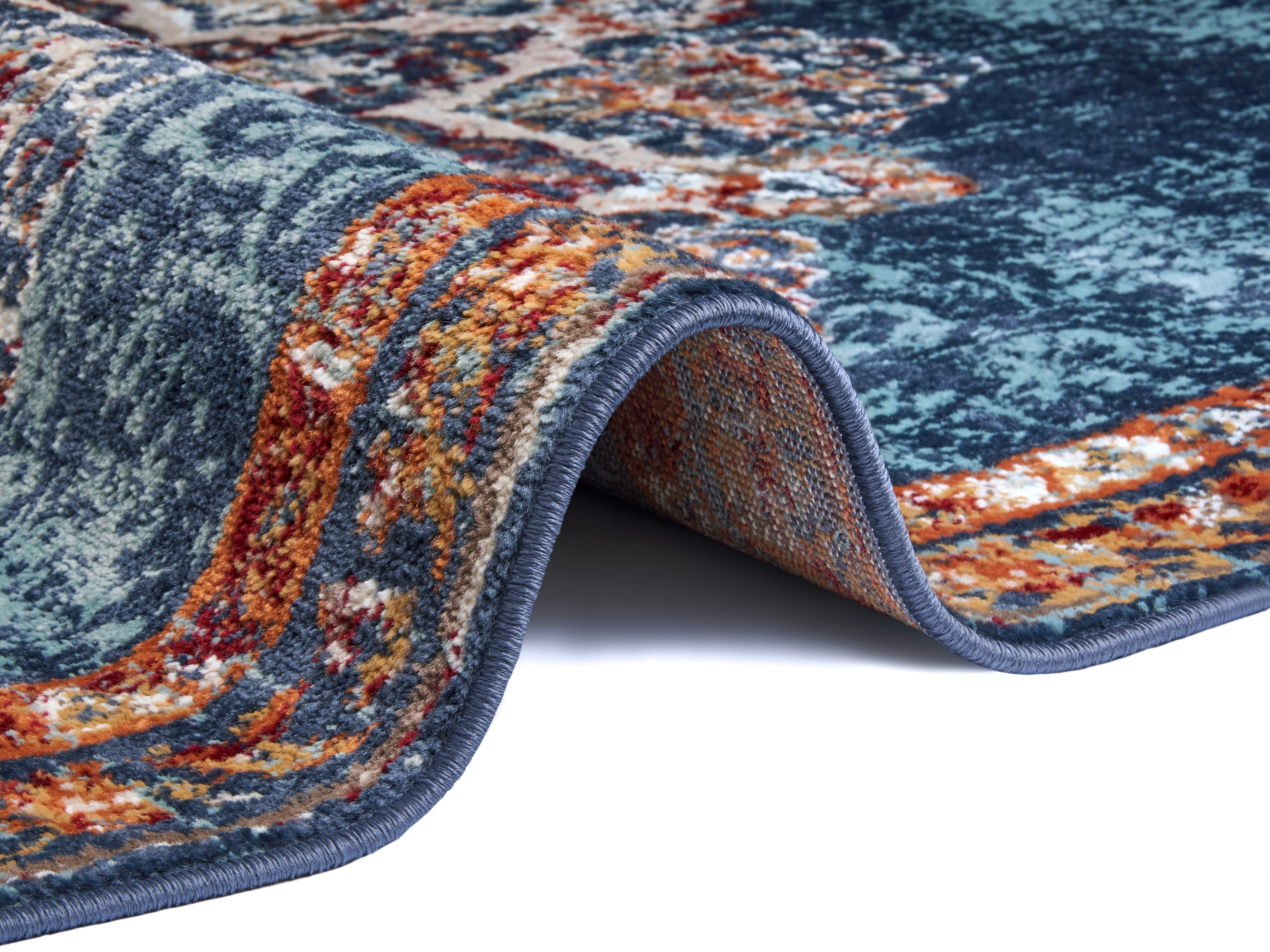Luxor-tæppet er ikke kun smukt, men også praktisk. Det florale design i klassiske farvekombinationer gør tæppet alsidigt og passer ind i de fleste indretninger. Den robuste kantning, kaldet en border, sikrer lang holdbarhed og et stilrent udtryk. Bagsiden i en kombination af jute og polypropylen giver tæppet stabilitet og forhindrer det i at glide. Den høje kvalitet og de syntetiske fibre gør tæppet utroligt slidstærkt og nemt at rengøre, samtidig med at det er velegnet til gulvvarme.