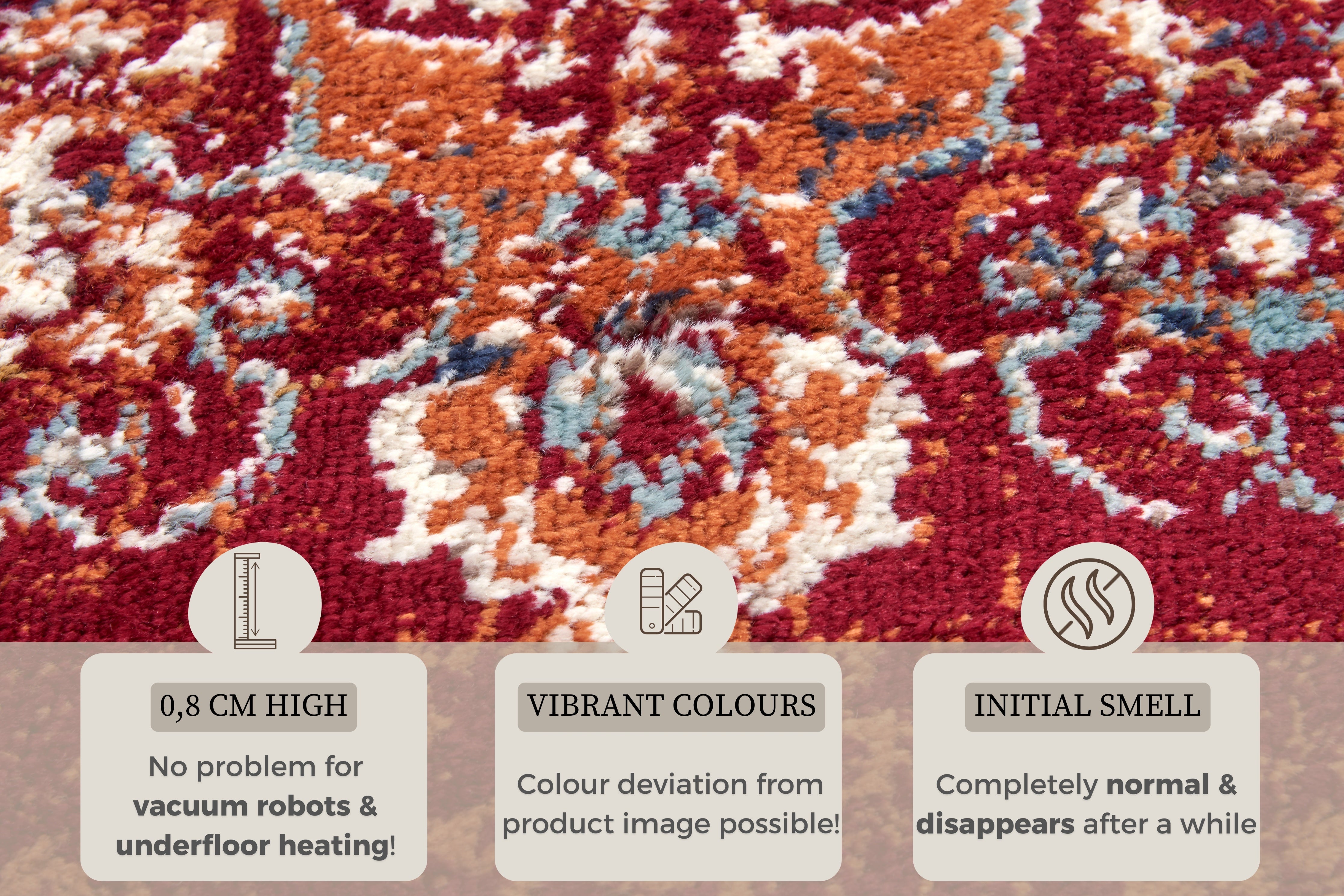 Forkæl dit hjem med den orientalske elegance fra Luxor-tæppet i en varm, rød nuance. Vævet i 100% slidstærkt polypropylen, tilføjer dette tæppe et strejf af klassisk charme og skaber en hyggelig atmosfære i ethvert rum.