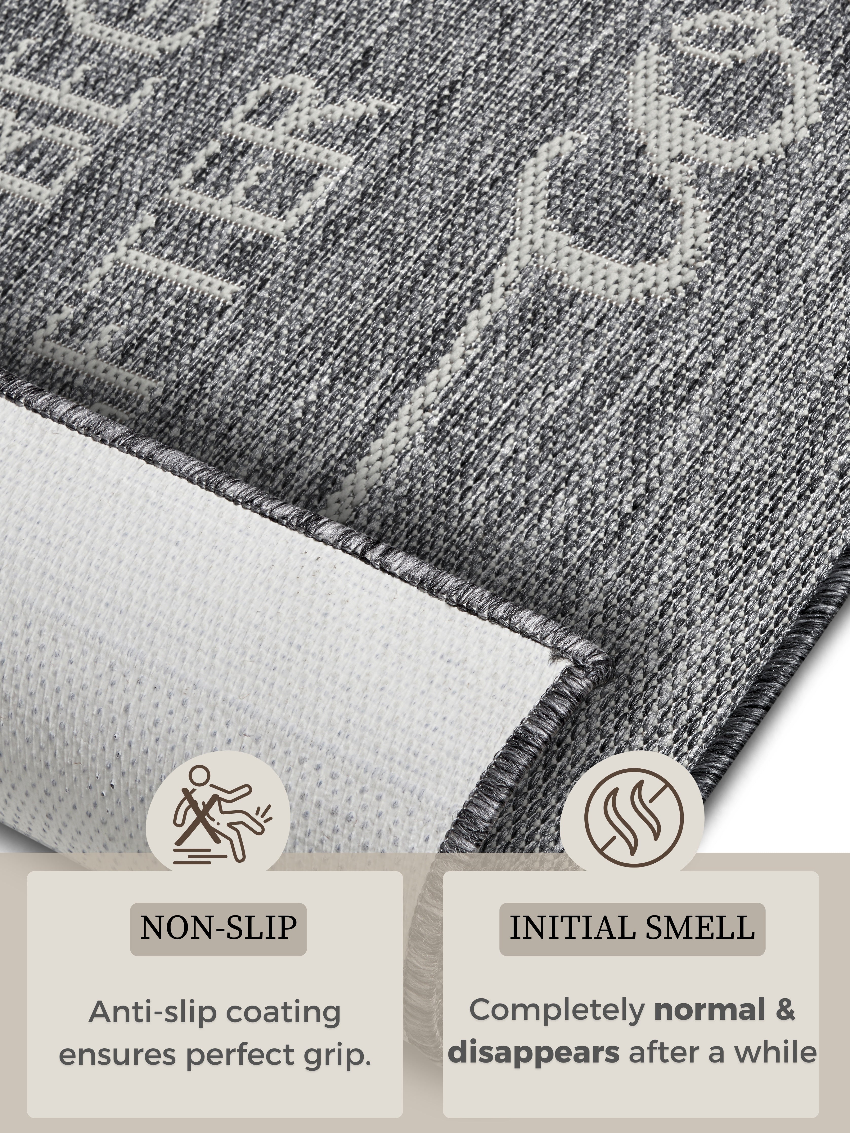 Cucina-tæppet er ikke kun smukt, men også praktisk. Den robuste konstruktion i polypropylen sikrer lang holdbarhed og gør tæppet nemt at rengøre. Bagsiden i 100% latex giver et sikkert greb på alle gulvtyper, inklusive gulvvarme, så du kan føle dig tryg, mens du bevæger dig rundt i køkkenet. Tæppets høje kvalitet og det syntetiske materiale sikrer minimal vedligeholdelse, så du kan nyde dets skønhed i mange år. Det moderne, skridsikre design passer perfekt ind i enhver indretningsstil og sætter et særligt præg på dit køkken.