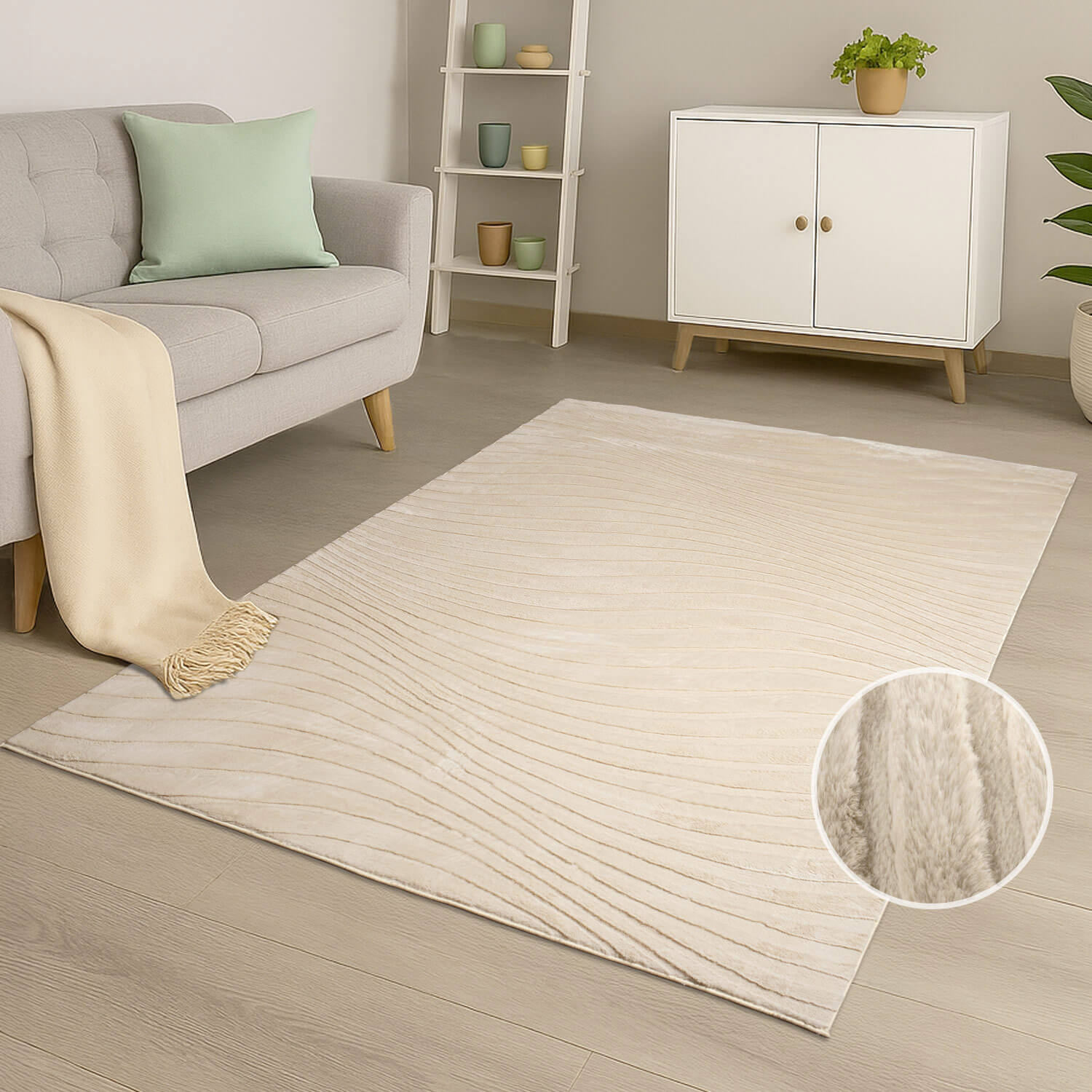 Bring harmoni og blid dynamik ind i dit hjem: Waves-kollektionen imponerer med sit moderne design og elegante relief-look (3D-effekt). Dette tæppe er lavet af polyester af høj kvalitet med en blød fornemmelse, er fløjlsblødt og skaber en hyggelig atmosfære i ethvert opholdsrum.