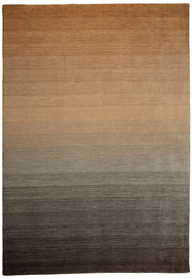 Oplev den perfekte balance mellem elegance og varme med dette håndlavede tæppe, der kombinerer raffinerede nuancer af grå og gyldenbrun. Tæppets smukke gradientdesign skaber en naturlig overgang mellem farverne og tilfører ethvert rum et moderne og stilfuldt udtryk.