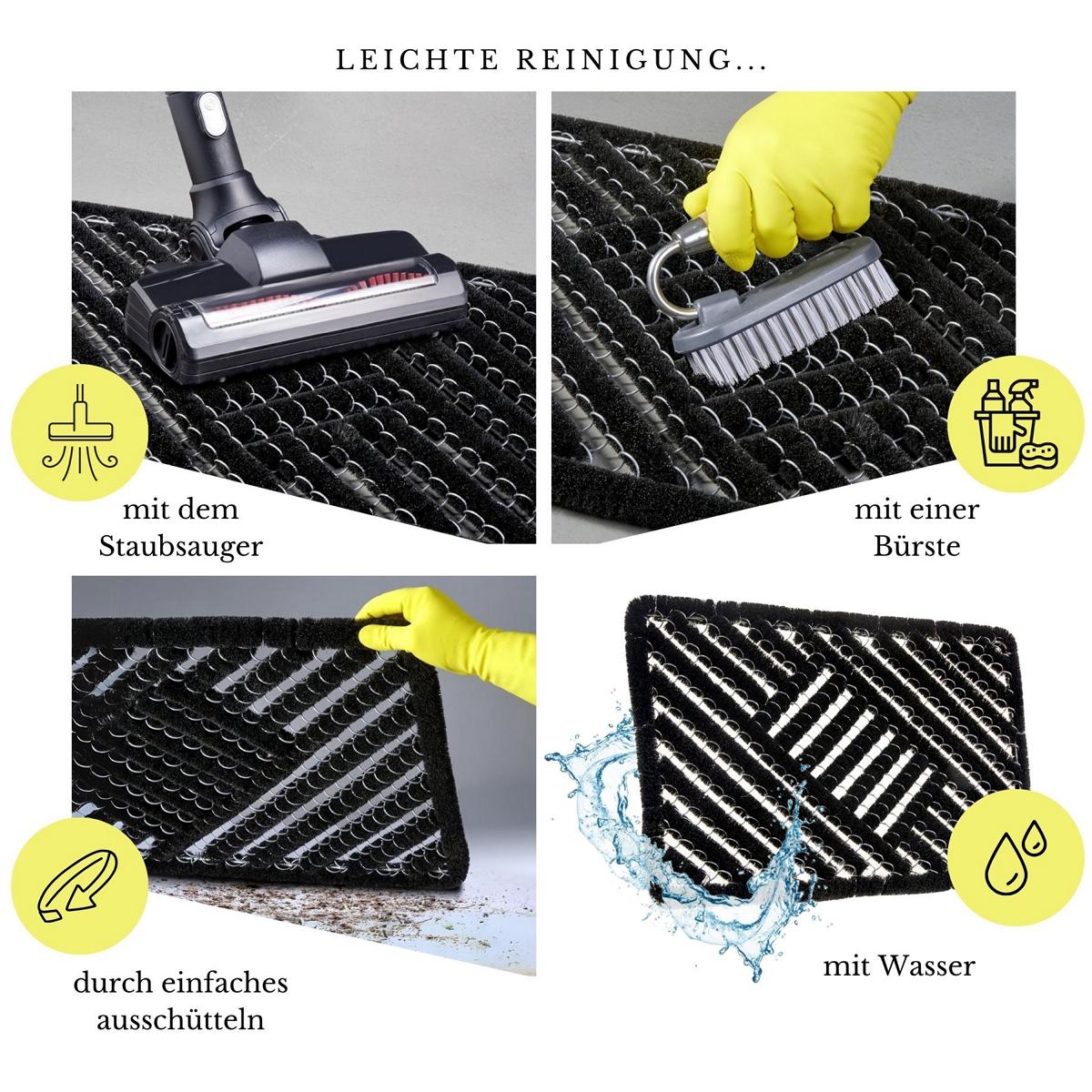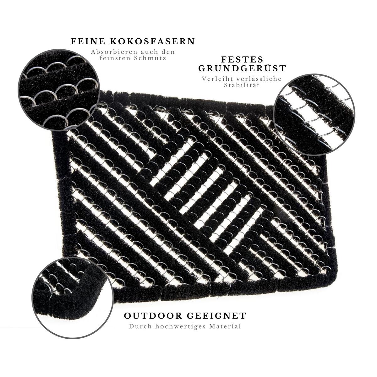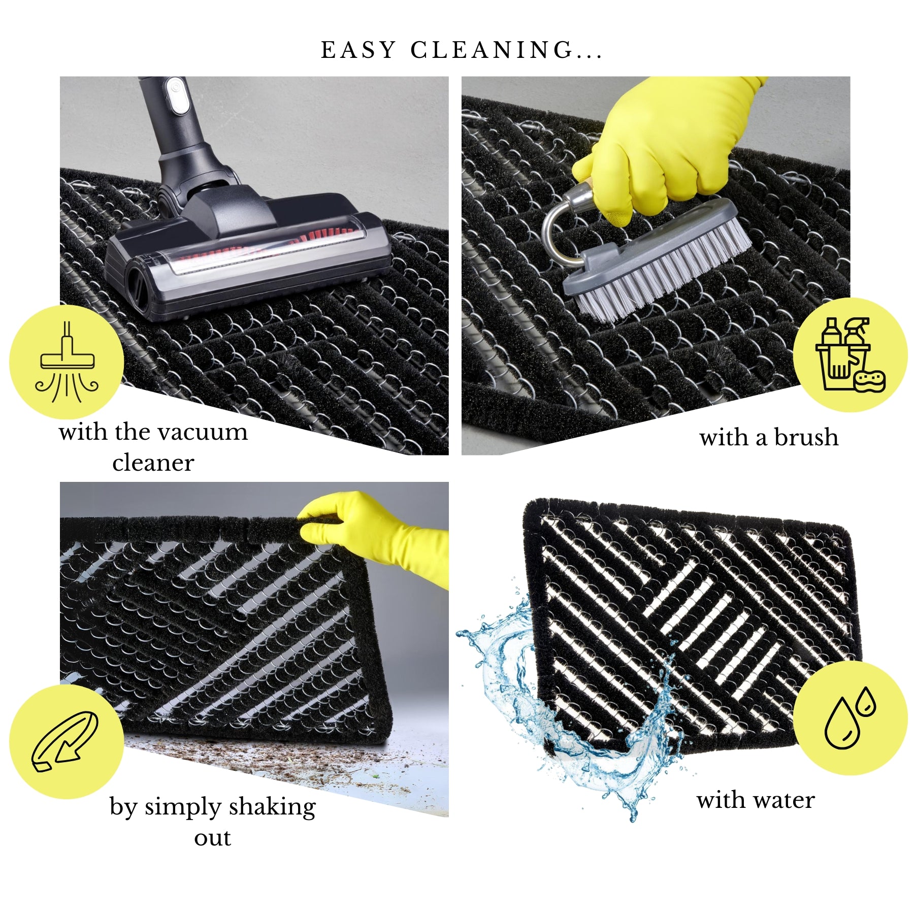 Kokosfibrene er naturligt bakteriehæmmende og sørger for, at snavs og bakterier bliver på måtten og ikke slæbes med ind. Den solide base af zink og kokosfibre holder måtten sikkert på plads og giver en pålidelig stabilitet, selv ved hyppig brug. De effektive børster fjerner effektivt snavs fra dine sko, så din entré forbliver ren og pæn.