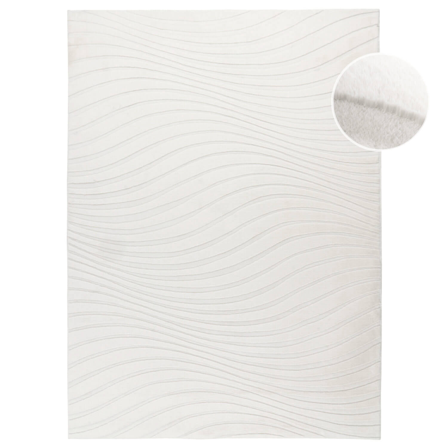 Bring harmoni og blid dynamik ind i dit hjem: Waves-kollektionen imponerer med sit moderne design og elegante relief-look (3D-effekt). Dette tæppe er lavet af polyester af høj kvalitet med en blød fornemmelse, er fløjlsblødt og skaber en hyggelig atmosfære i ethvert opholdsrum.