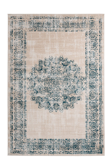 Dette fladluvede tæppe i vintagestil kan ikke kun bruges i klassiske interiører, men også i moderne boligstile. De vaskede farver og det detaljerede mønster, der er typisk for vintagestilen, karakteriserer tæppet. Du kan opnå et harmonisk helhedsindtryk ved at kombinere tæppet med matchende møbler og møbler. Den flade luv suppleres af en jutebagside og en kant, der omgiver hele tæppet. Kanten skaber ikke kun et afrundet, harmonisk udseende, men forhindrer også fibrene i at flosse. Det betyder, at tæppet bevarer sin charme selv ved kraftig brug. Tæppets faktiske farve og mønster kan variere fra billederne.