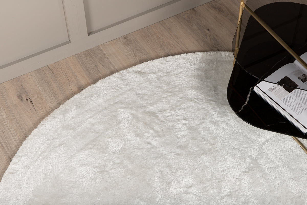 Blanca, en lækker tæppedrøm i slidstærkt polyester! Materialet har en smuk glans, der giver rummet et eksklusivt præg. Tæppets trendy runde form og let tilpasselige tone i hvid gør det nemt at matche med anden indretning og passer lige så godt i sofagruppen som i soveværelset. Lad gulvtæppet blive en hyggelig detalje at sætte fødderne på og møbler dit hjem med et personligt og hyggeligt indtryk! Tæppemål: D200cm Plejeråd: Brug en støvsuger med mundstykke uden børste og støvsug jævnligt. Skulle der være pletter på tæppet, skal pletterne straks behandles med en fugtig klud eller husholdningspapir. Rengør omhyggeligt, børster kan beskadige tæppet og farvede eller mønstrede klude kan overføre deres farve til tæppet.