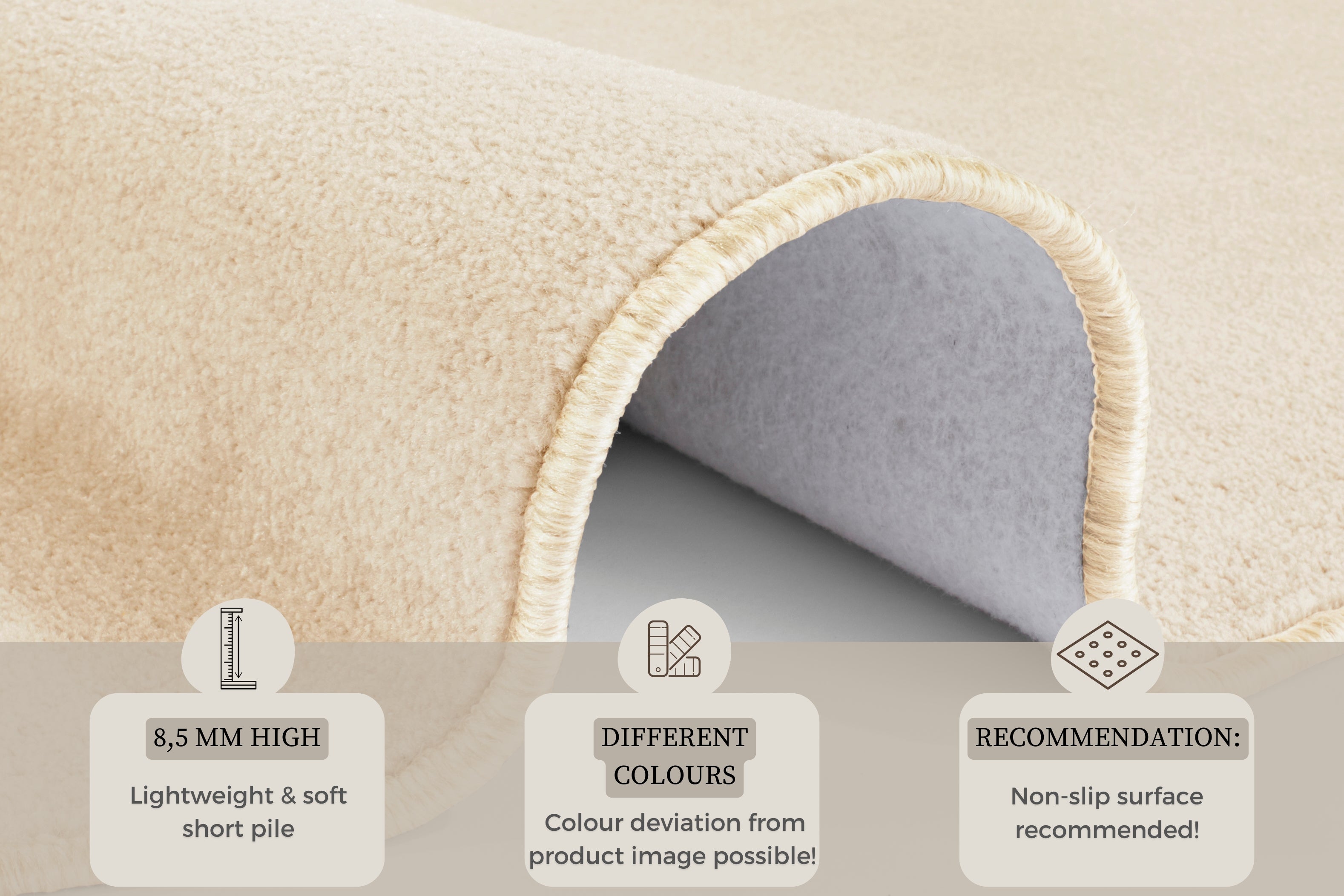 Med en luvhøjde på 0.85 mm tilbyder Nasty-tæppet en behagelig, lavpolet overflade. For at bevare tæppets skønhed anbefales rengøring med tæppeskum eller shampoo.
