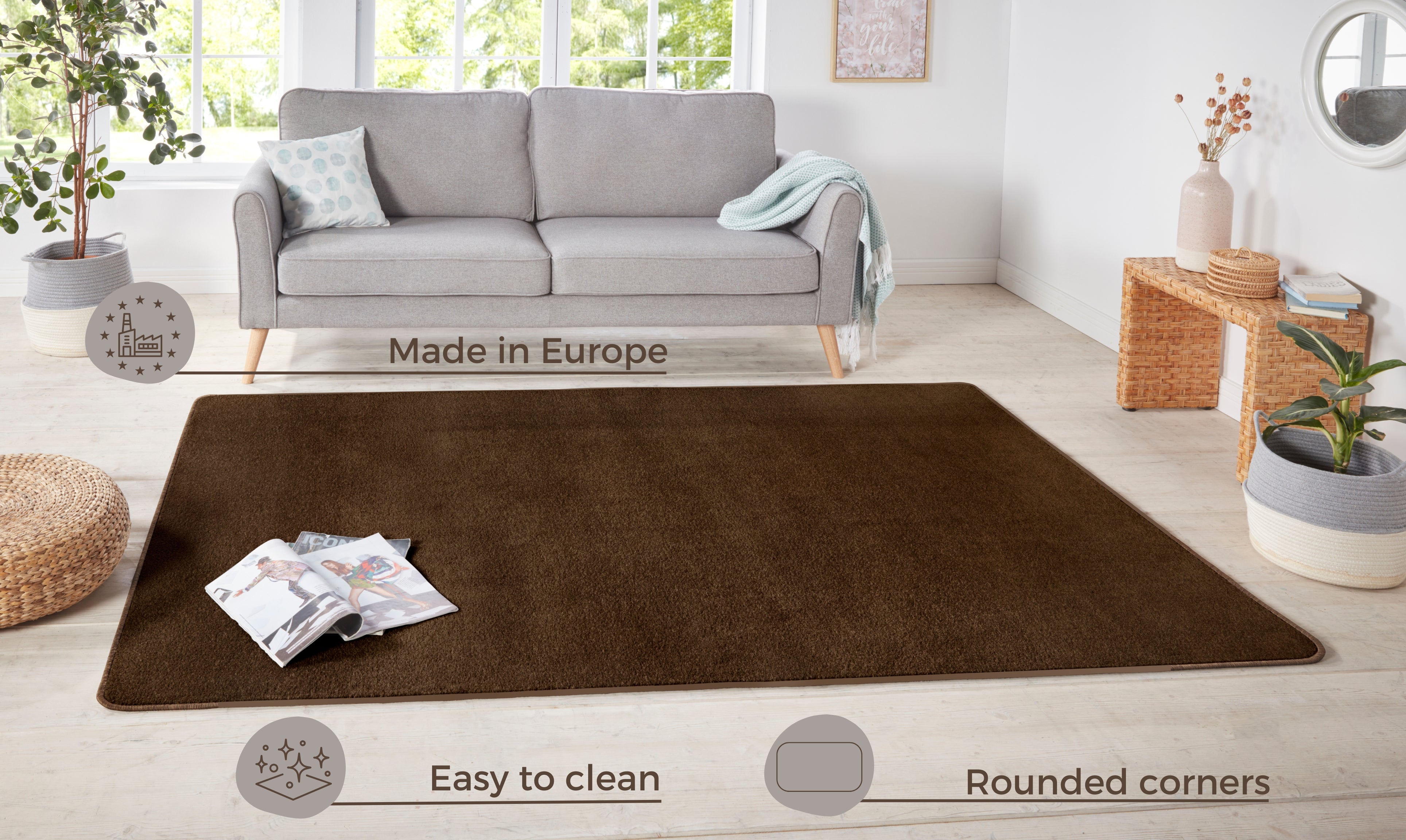 Nasty - 101154 Brun har en luvhøjde på 0.85 mm, hvilket giver en behagelig og blød fornemmelse under fødderne. Rengøring er let og bekvemt med tæppeskum eller shampoo.