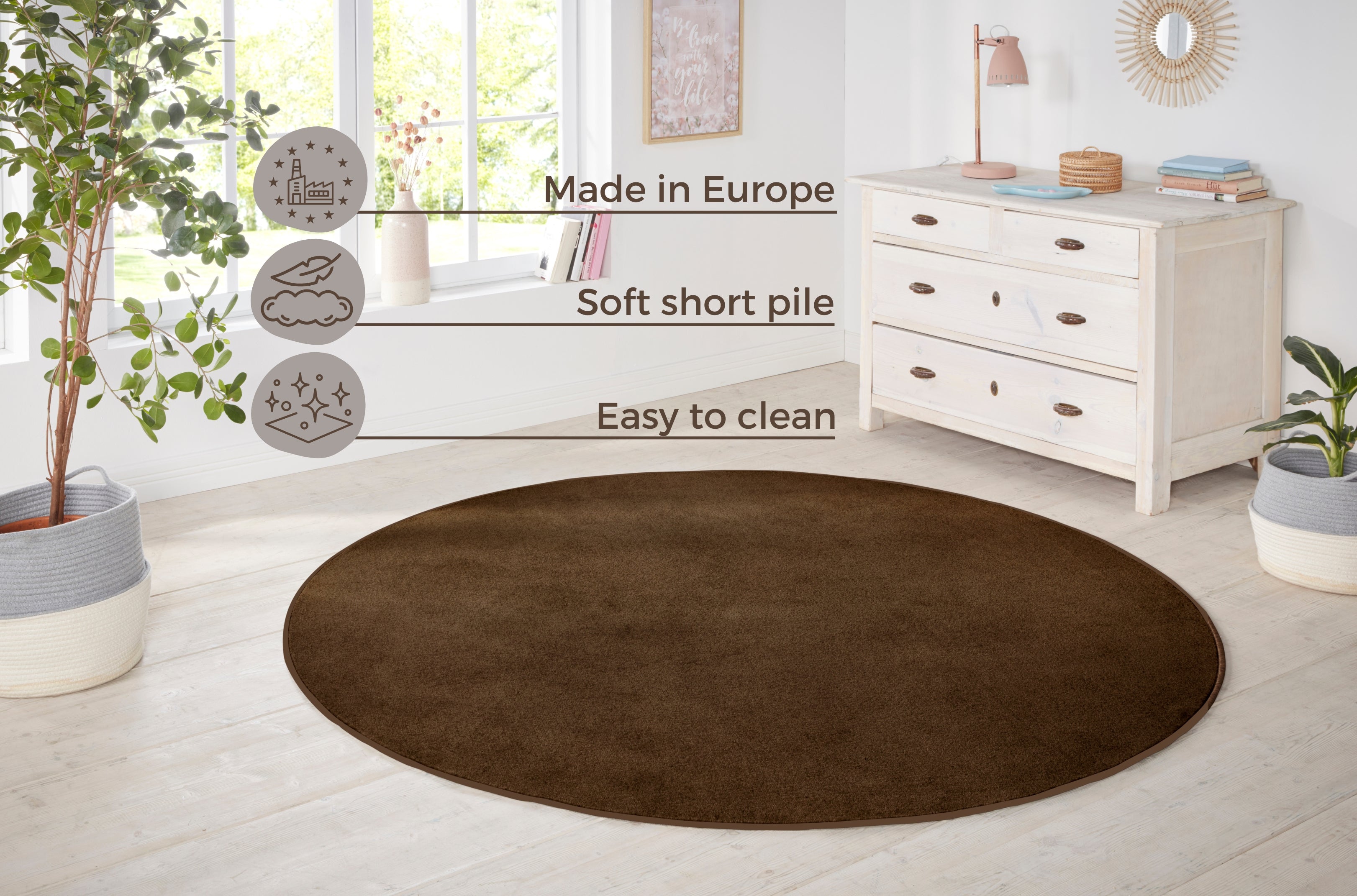 Nasty tæppet er ikke bare smukt, det er også praktisk. Den bløde fleecebagside giver ekstra komfort og beskytter dit gulv mod slid. Tæppet er desuden nemt at rengøre og velegnet til gulvvarme, hvilket gør det til et ideelt valg til moderne hjem. Det enkle og tidløse design passer perfekt ind i enhver indretning, og med det store udvalg af farver og former i Nasty kollektionen, finder du nemt et tæppe, der passer til din personlige stil.