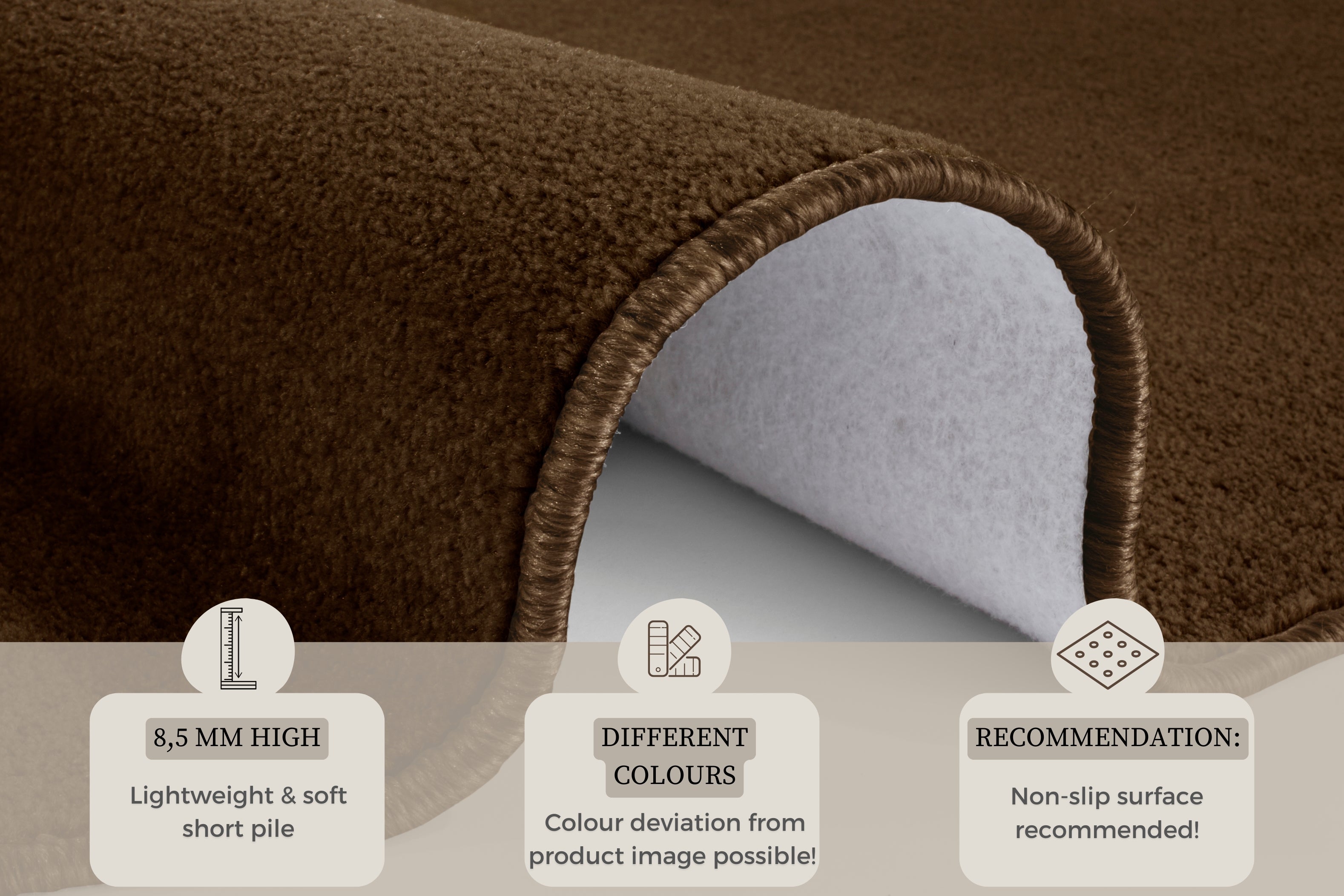 Med en luvhøjde på 0.85 mm føles tæppet behageligt blødt under fødderne. For at holde dit Nasty tæppe rent og pænt anbefaler vi rengøring med tæpperens eller tæppeshampoo.