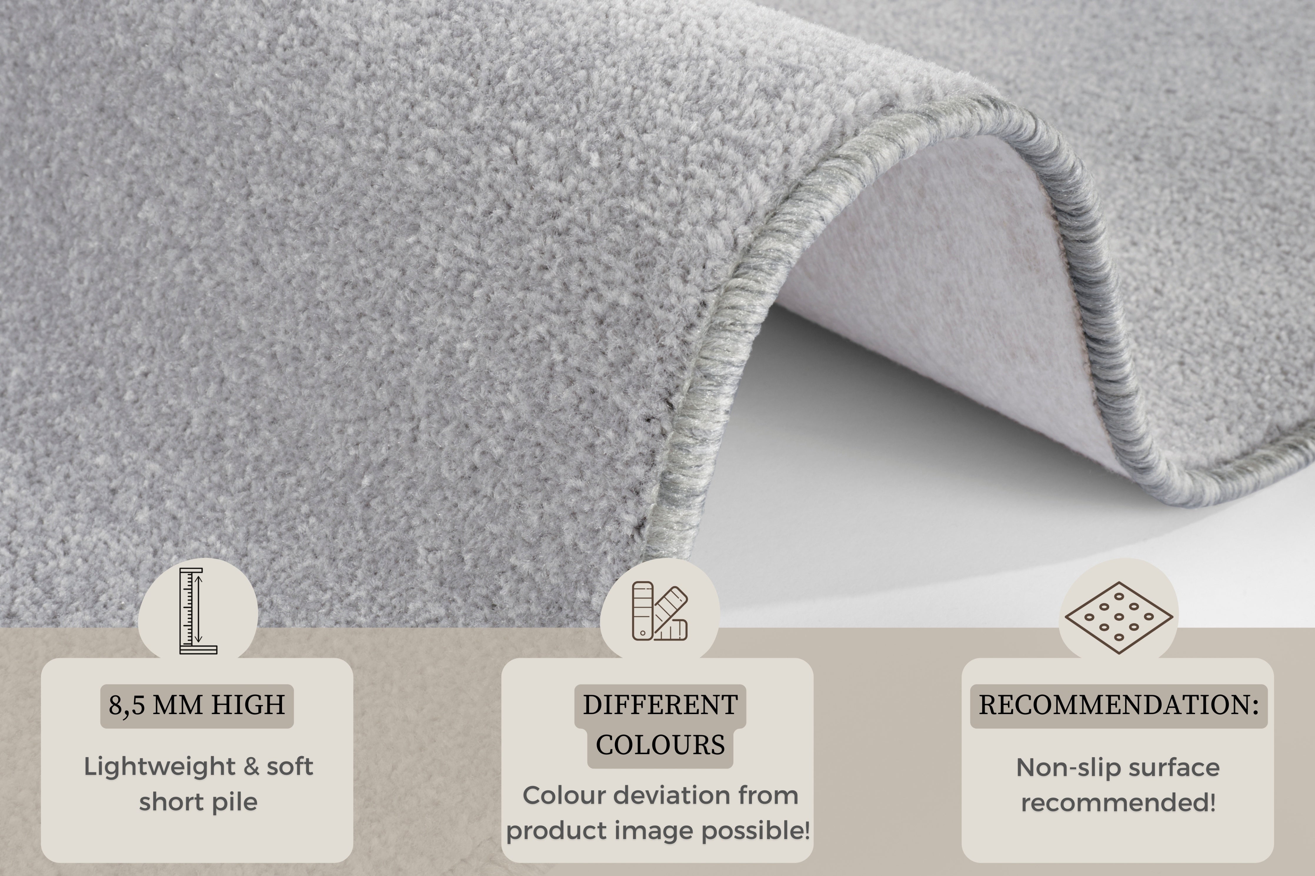 Udover sit æstetiske udtryk byder "Nasty - 101595 Sølv" på en række praktiske fordele. Den bløde fleecebagside giver ikke kun ekstra komfort under fødderne, men beskytter også dit gulv mod slid. Tæppet er nemt at rengøre og egner sig perfekt til gulvvarme, hvilket gør det til et ideelt valg for travle husholdninger. Den tidløse, ensfarvede design passer ind i enhver indretningsstil, og med Nasty kollektionens store udvalg i farver og former, finder du nemt det perfekte match til dit hjem.