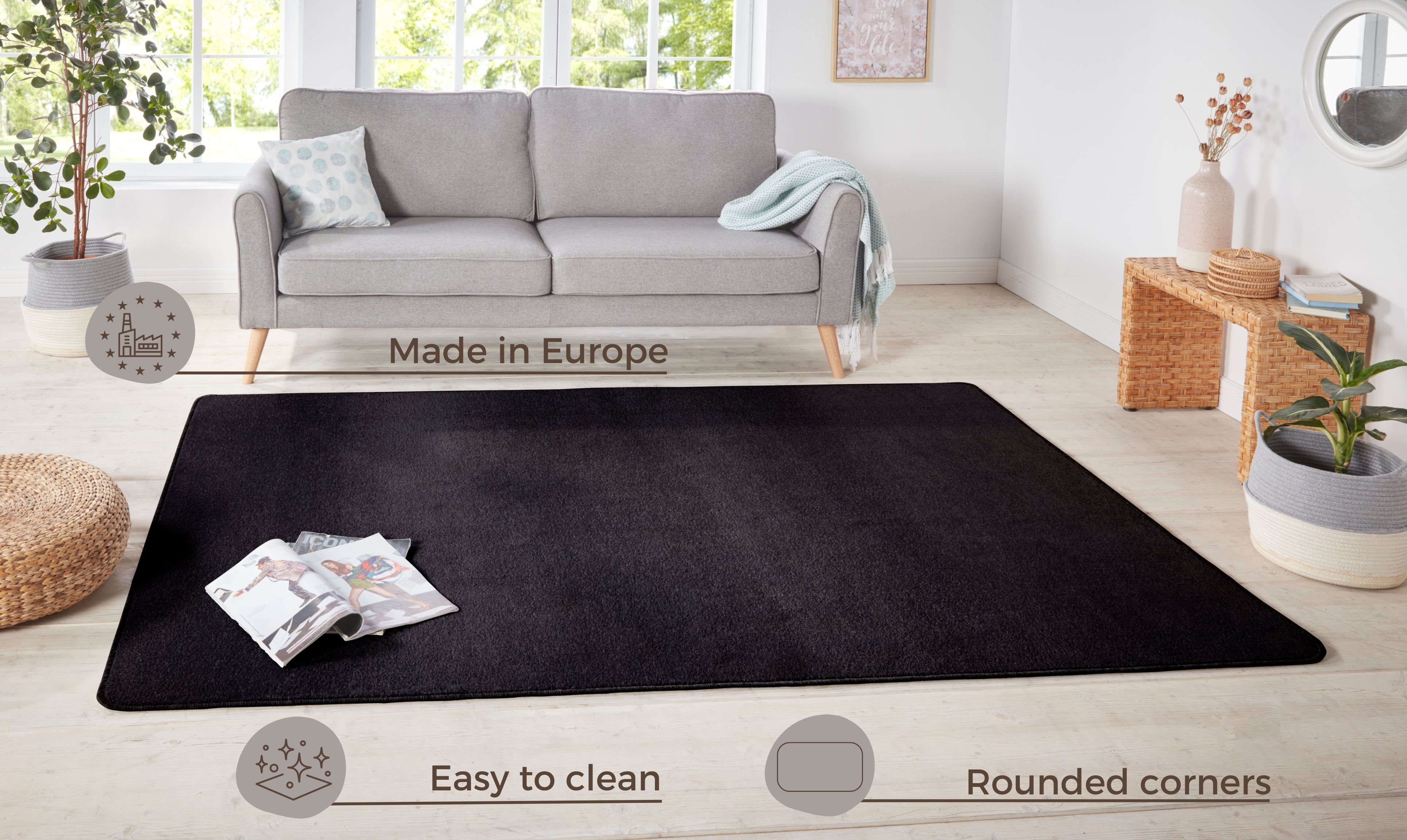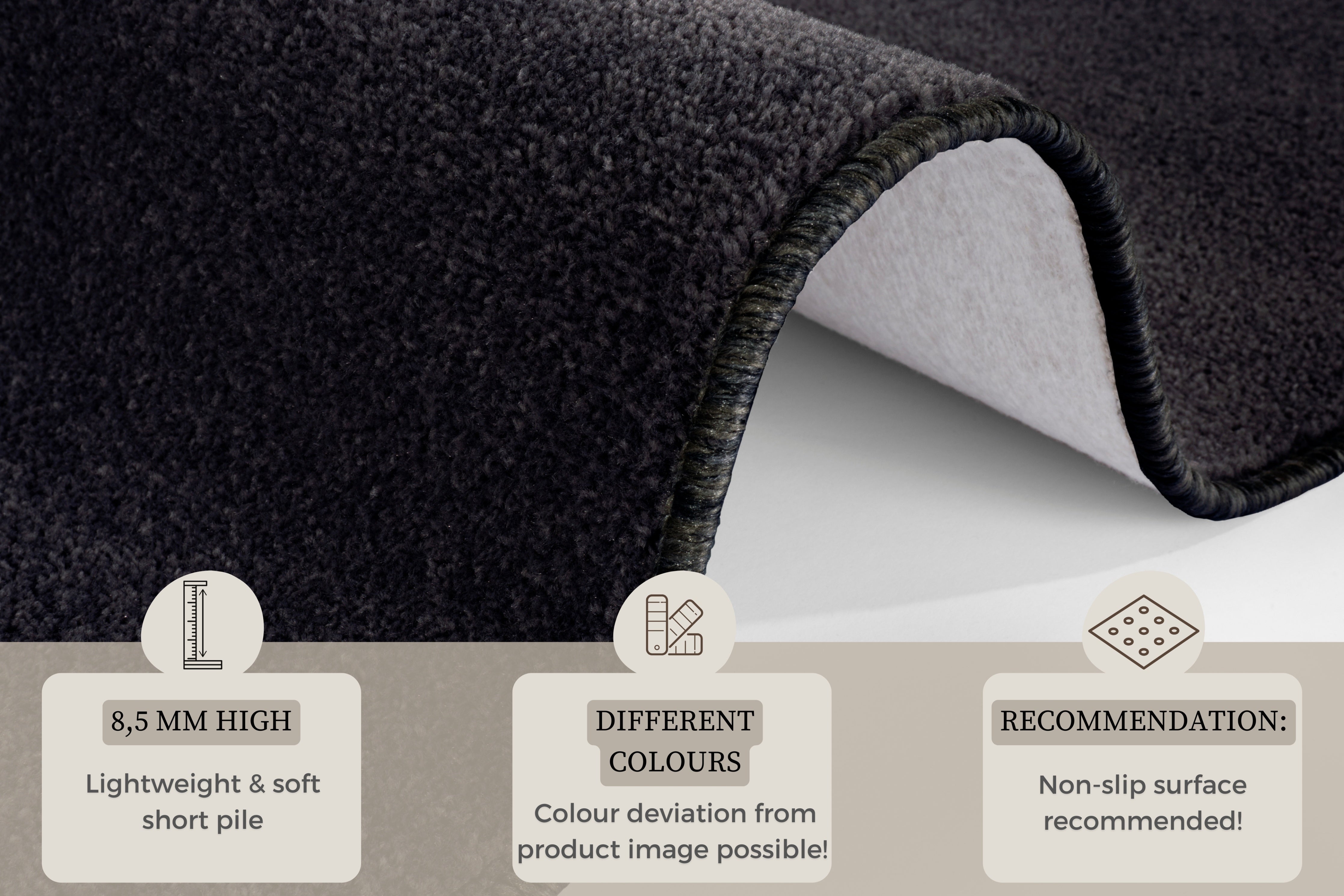 Nasty - 102055 Sort har en luvhøjde på 0.85 mm, hvilket giver en behagelig og blød fornemmelse under fødderne. Rengøring er let og ukompliceret – brug blot tæppeskum eller tæppeshampoo for at holde tæppet rent og pænt.