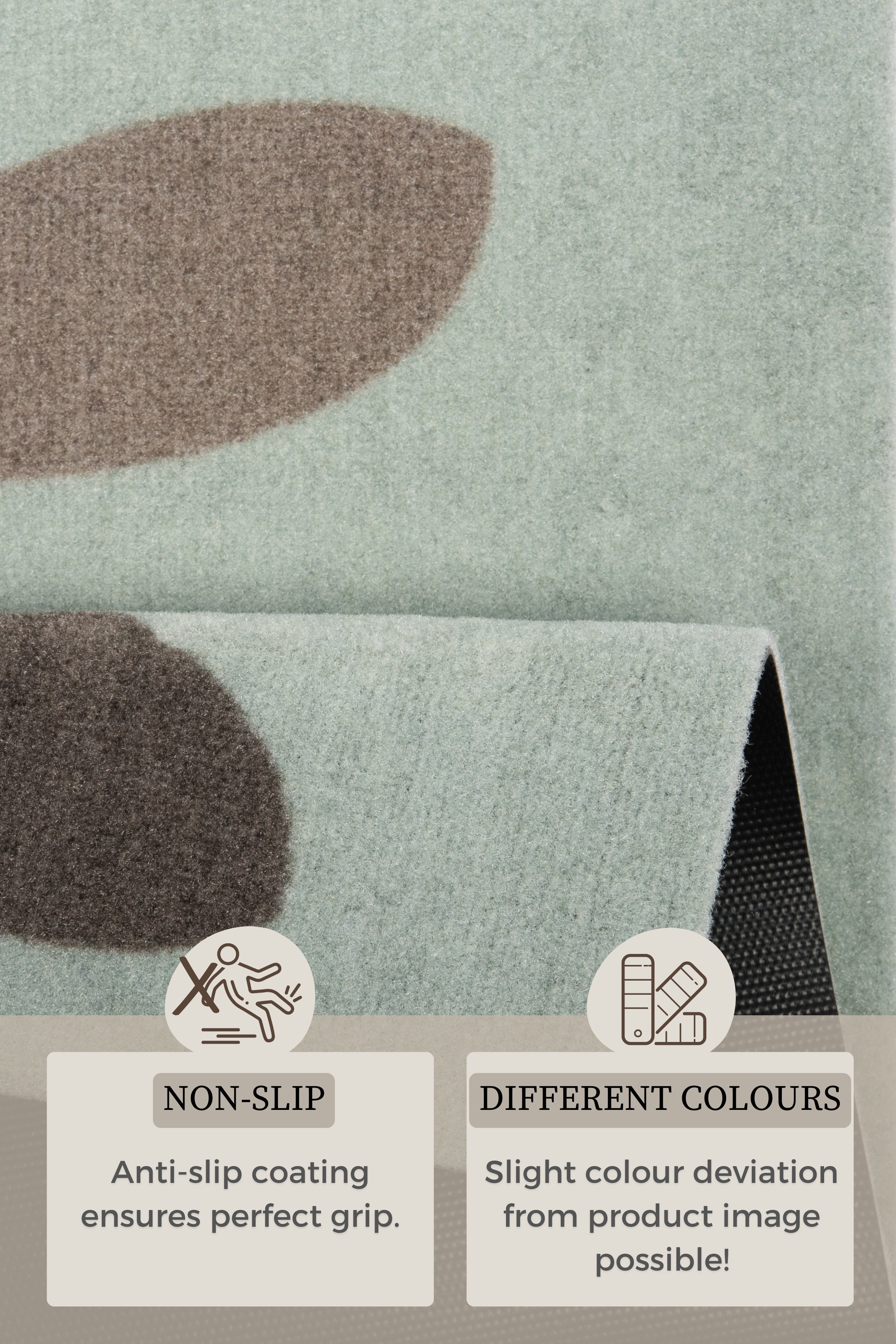 Med en luvhøjde på blot 0.7 mm føles måtten behagelig fast under fødderne. For at bevare måttens farve og kvalitet anbefales det at vaske den i hånden ved 30°C.