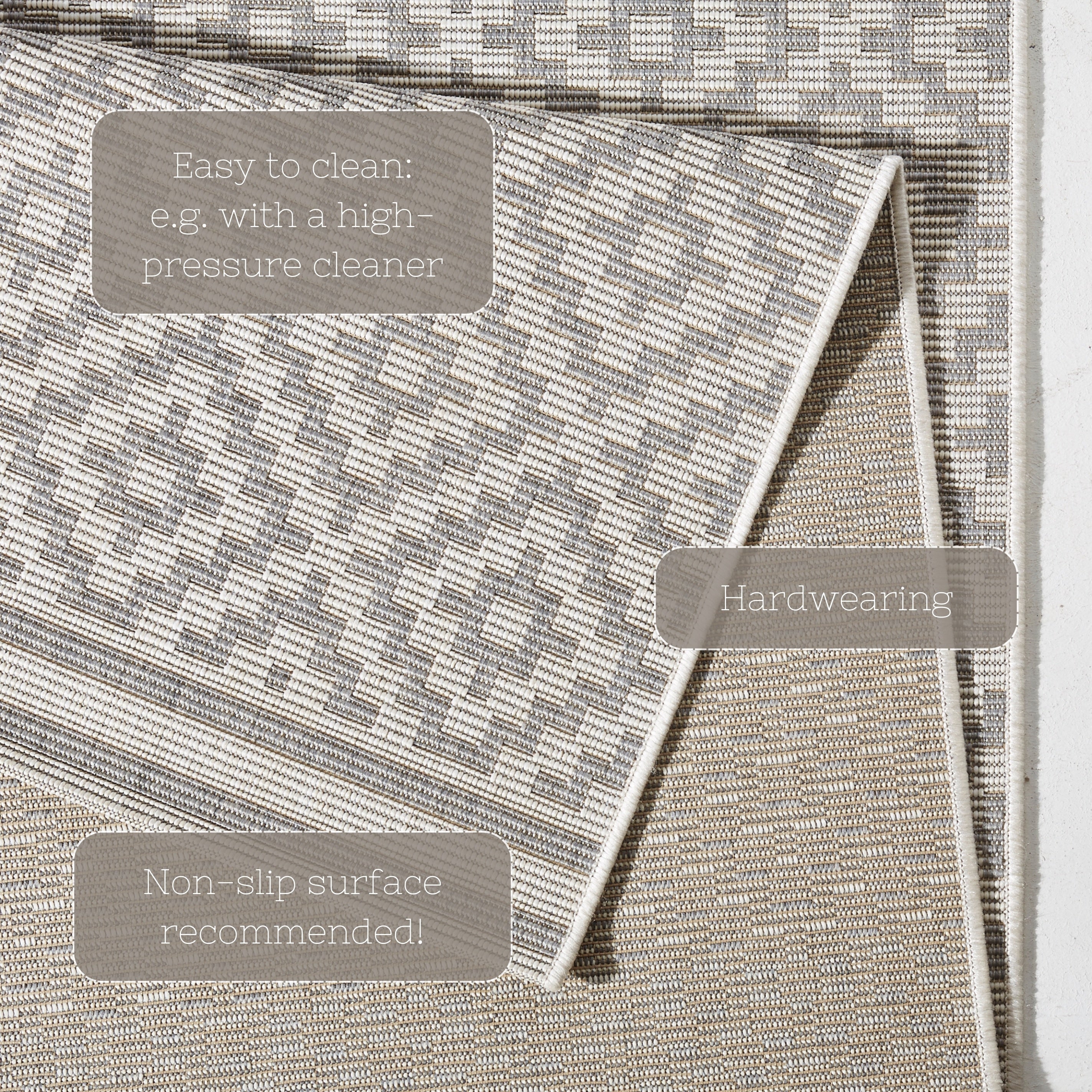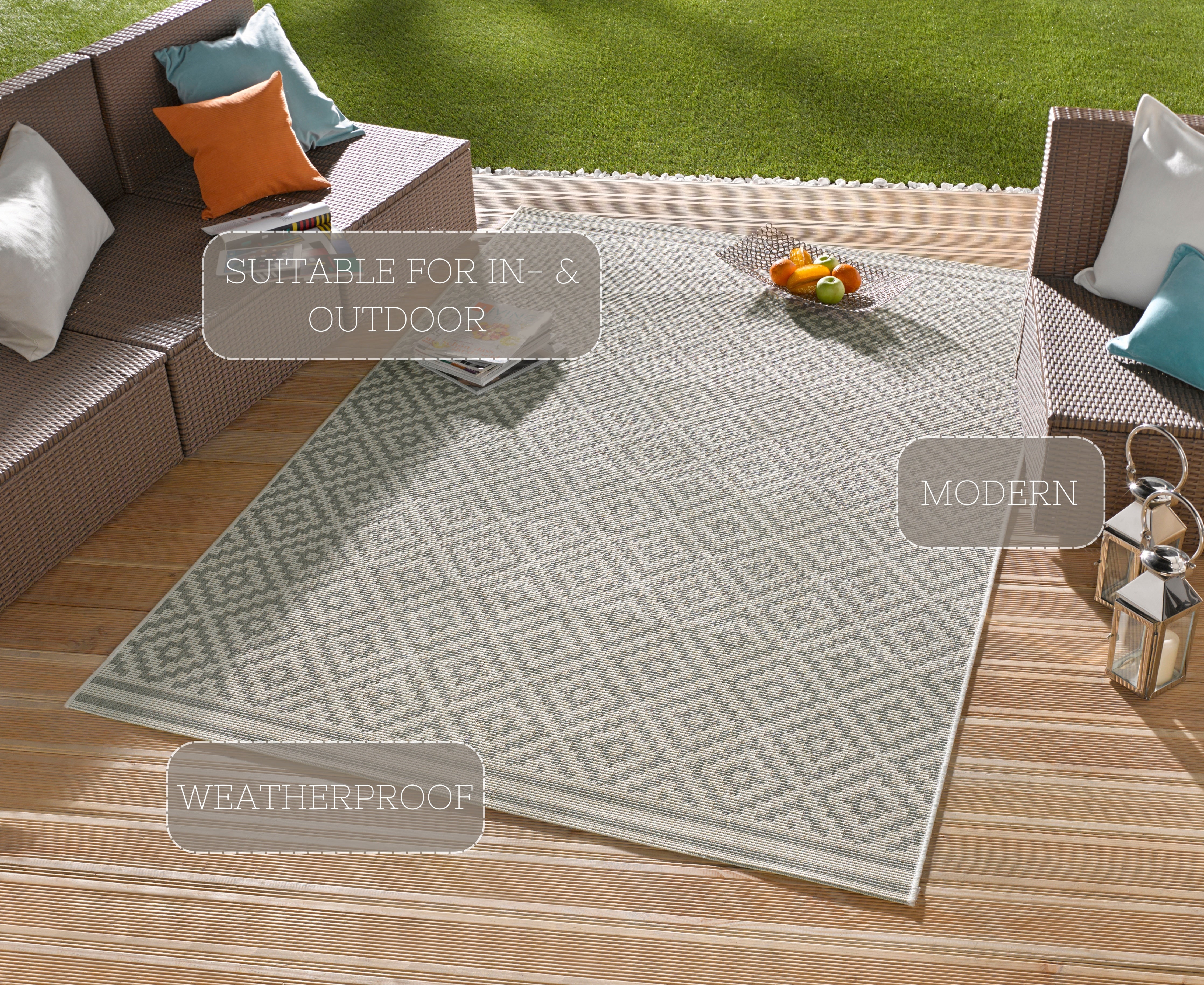 Meadow-tæppets geometriske design er ikke kun elegant, men også utrolig praktisk. Det er vejrbestandigt og nemt at rengøre – perfekt til både terrassen, altanen eller stuen. Den robuste polypropylen bagside sikrer stabilitet og forhindrer tæppet i at glide, mens materialets slidstærke natur garanterer lang holdbarhed. Tæppet er desuden egnet til alle gulvtyper, inklusive gulvvarme, så du kan nyde dets bløde komfort overalt i dit hjem.