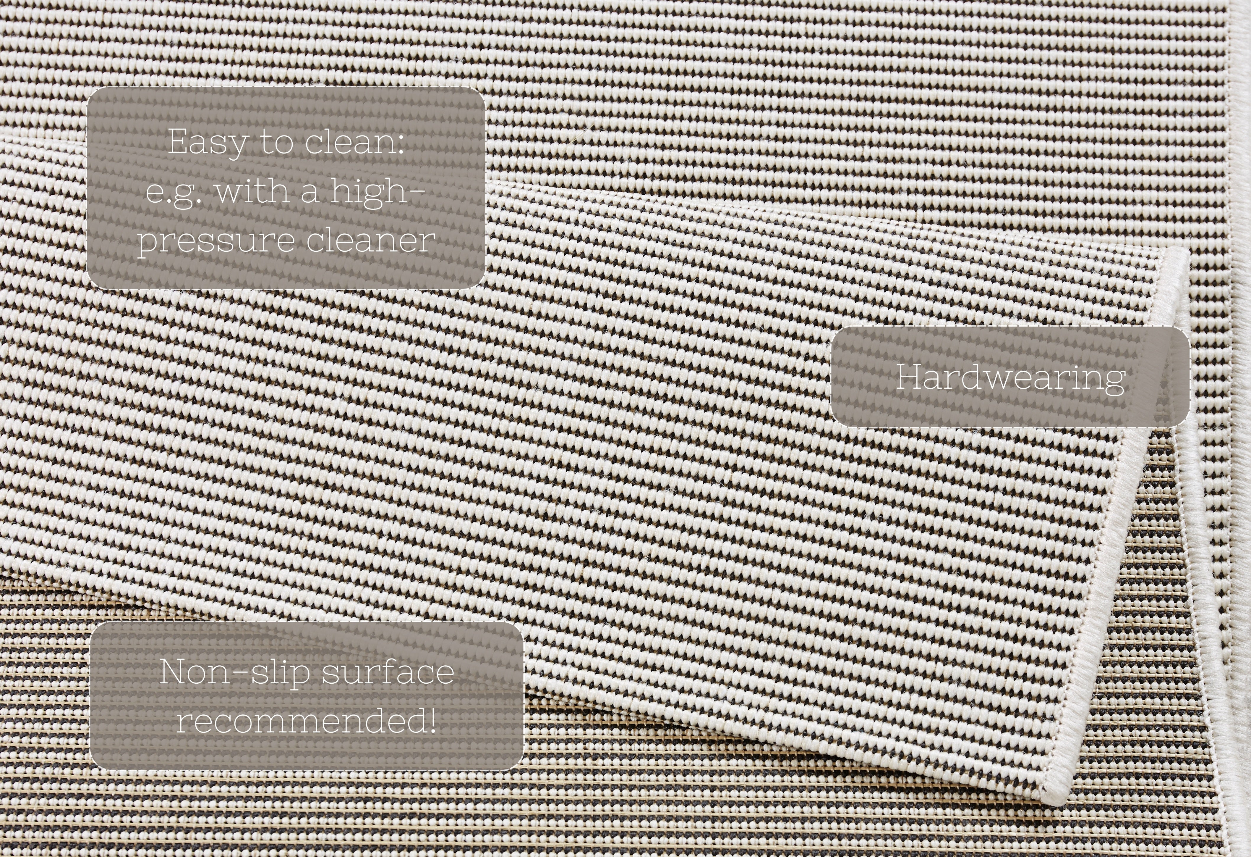 Meadow tæppet er en sand all-rounder. Det slidstærke polypropylen materiale gør det vejrbestandigt og ideelt til både indendørs og udendørs brug. Det moderne, ensfarvede design i en flot creme farve passer ind i enhver indretningsstil og er nemt at rengøre. Tæppet er desuden egnet til alle gulvtyper, inklusive gulvvarme, hvilket giver dig optimal fleksibilitet og komfort. Den robuste polypropylen bagside sikrer stabilitet og forhindrer tæppet i at glide.