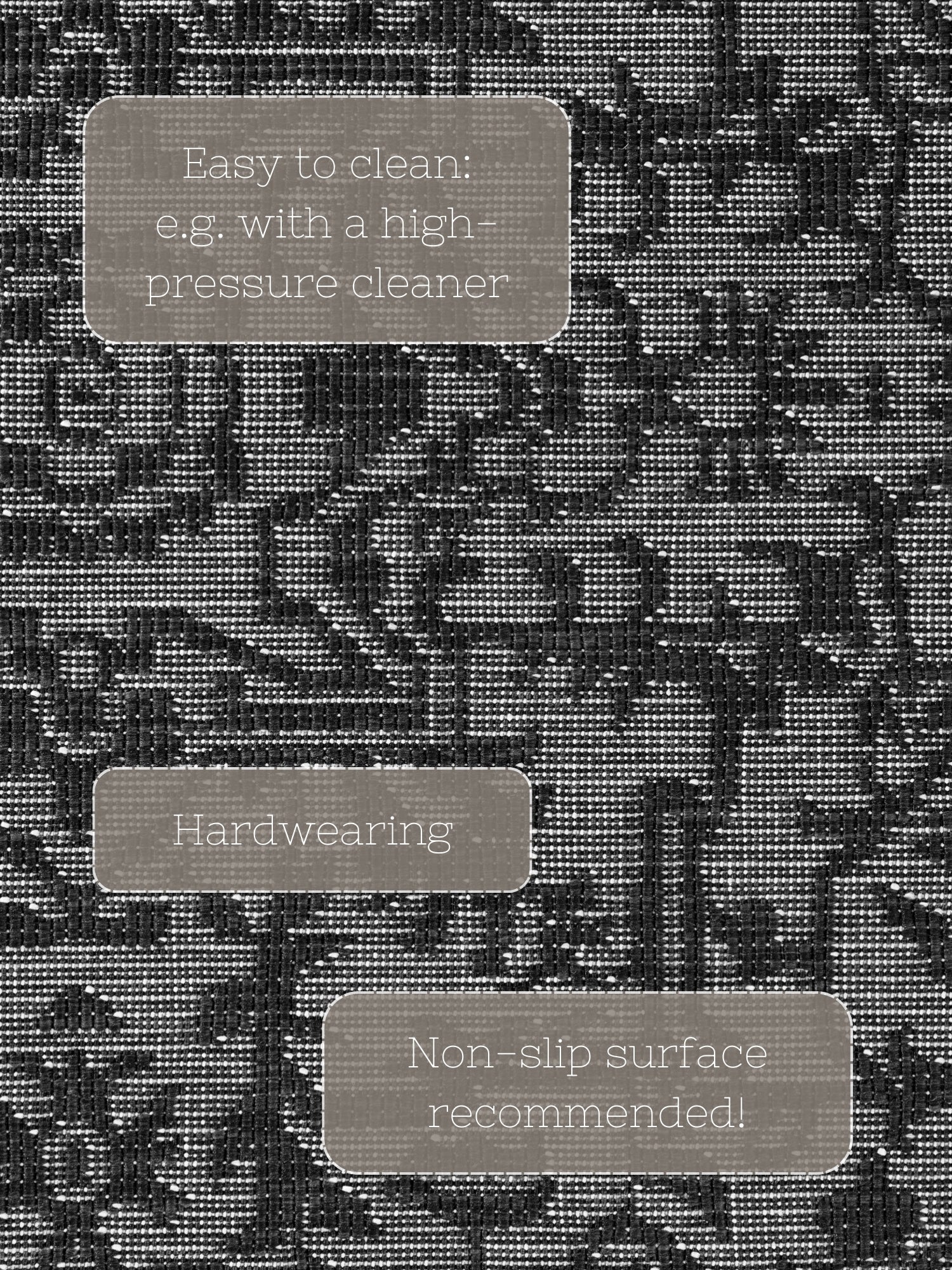 Duet tæppet er en sand multikunstner. Brug det som et elegant stuegulvstæppe eller giv din terrasse eller altan et stilmæssigt løft. Med sin vendbare design kan du nemt skifte look og stemning med et snuptag. Den fladvævede konstruktion gør tæppet velegnet til gulvvarme, mens det robuste og smudsafvisende polypropylenmateriale sikrer, at det kan modstå vind og vejr. Tæppet er maskinfremstillet for optimal holdbarhed.