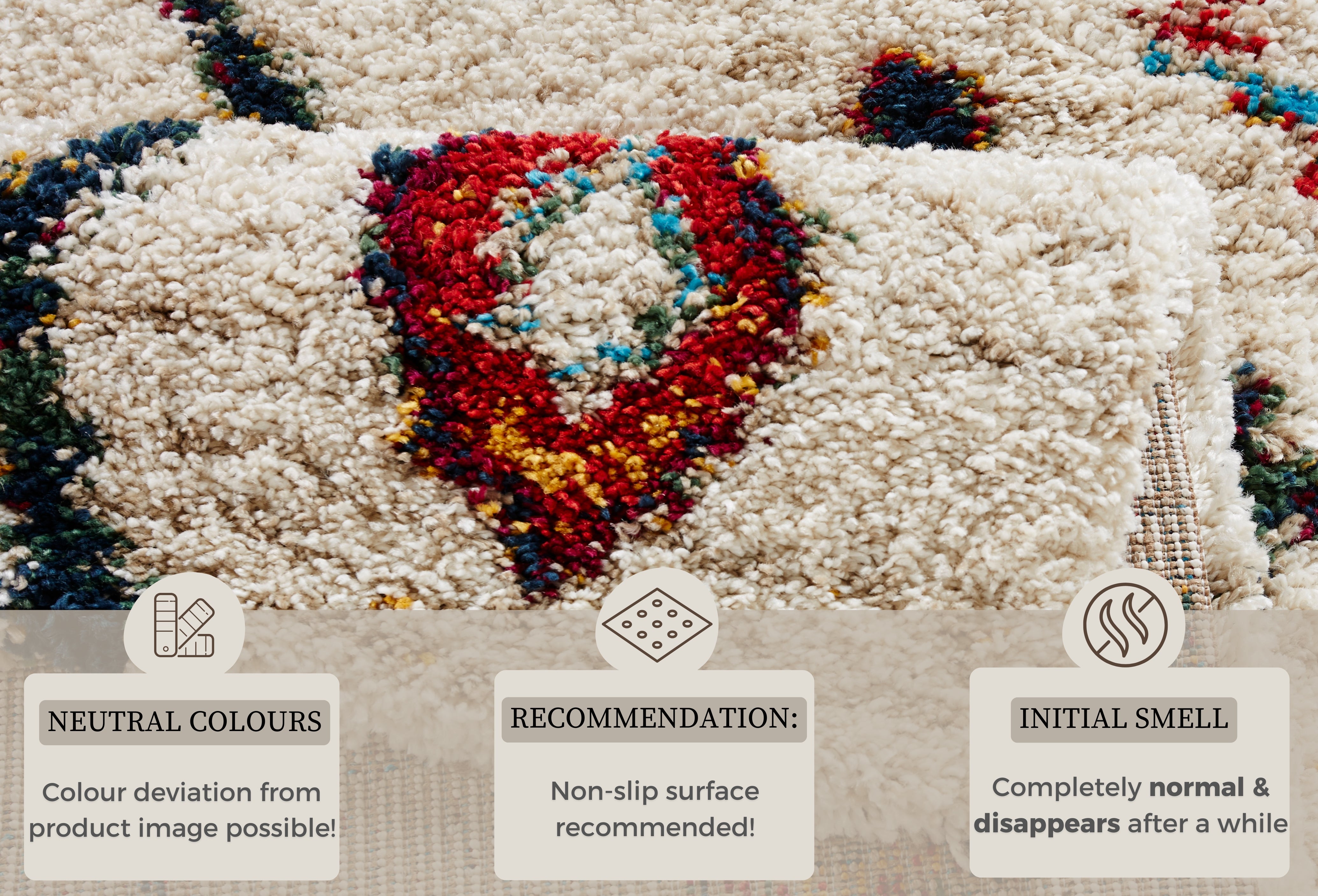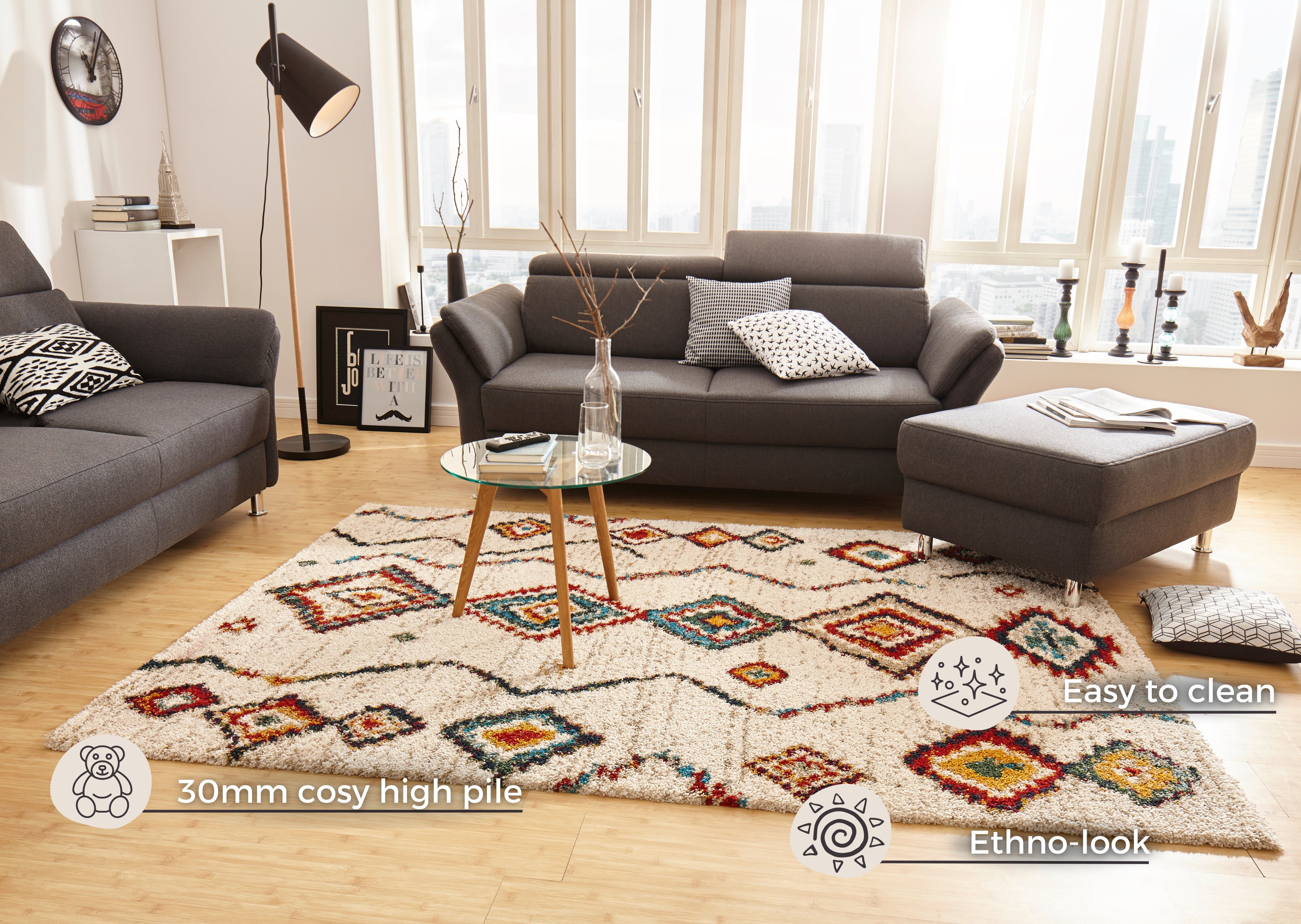Med en luvhøjde på 3 mm tilbyder Nomadic tæppet en behagelig blødhed under fødderne. For at holde tæppet rent og pænt anbefales det at rengøre det med tæpperens eller tæppeshampoo. Giv dit hjem et strejf af boho-stil med Nomadic - 102693 Creme.