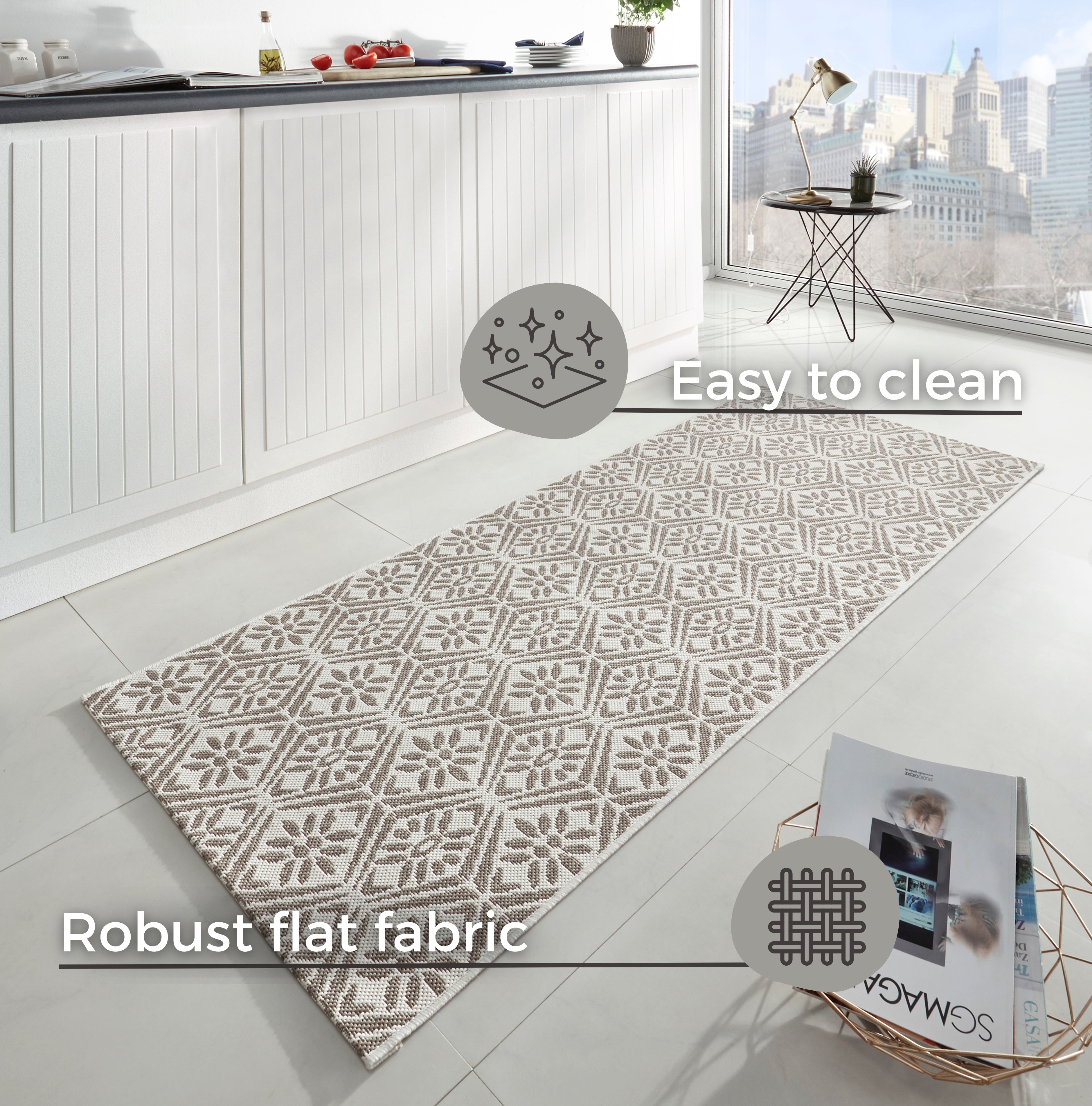 Soho løberen er ikke kun smuk, men også praktisk. Den skridsikre bagside i polypropylen sørger for et sikkert underlag for hele familien, mens den slidstærke konstruktion sikrer lang holdbarhed. Tæppet er nemt at rengøre og tåler gulvvarme, hvilket gør det til et ideelt valg til travle hjem. Nyd den høje kvalitet og korte transportvej - Soho tæppet er produceret i Europa og egner sig til alle typer gulve.